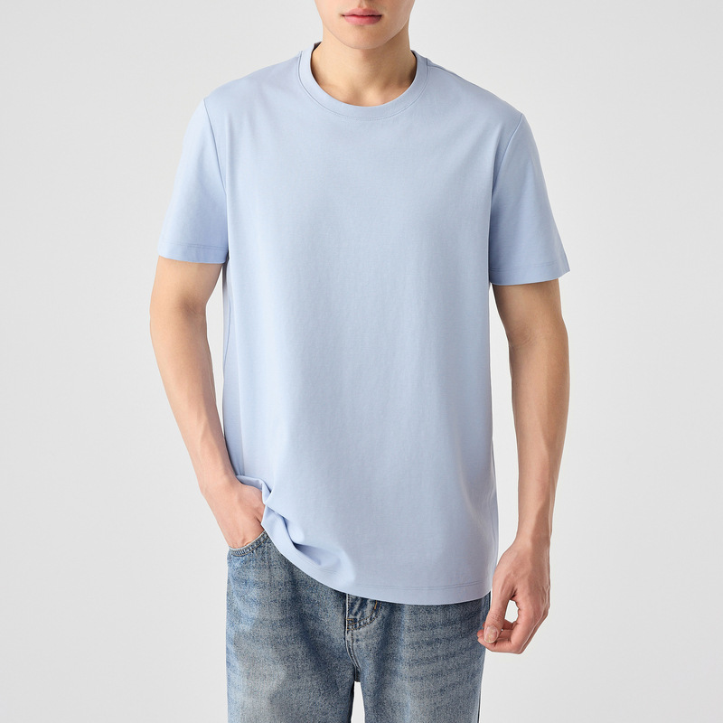 Momeck men's mulberry Silk Blend short-sleeved T-shirt for men 2025 Summer New Cool solid color men's T-shirt 71775.