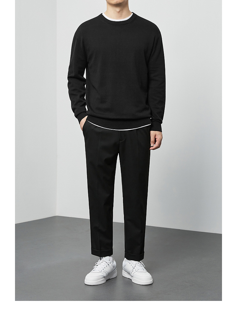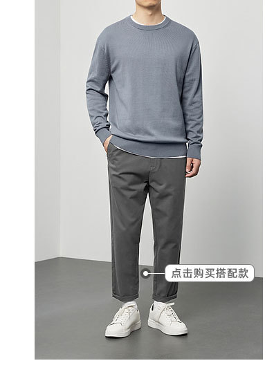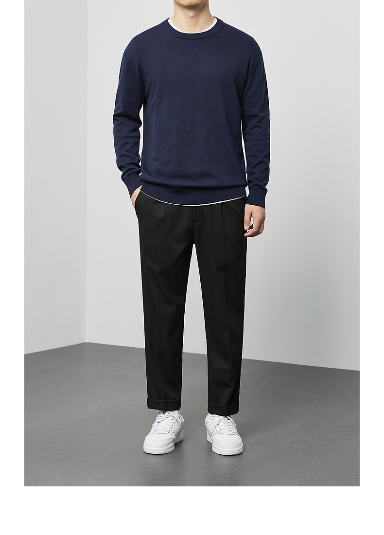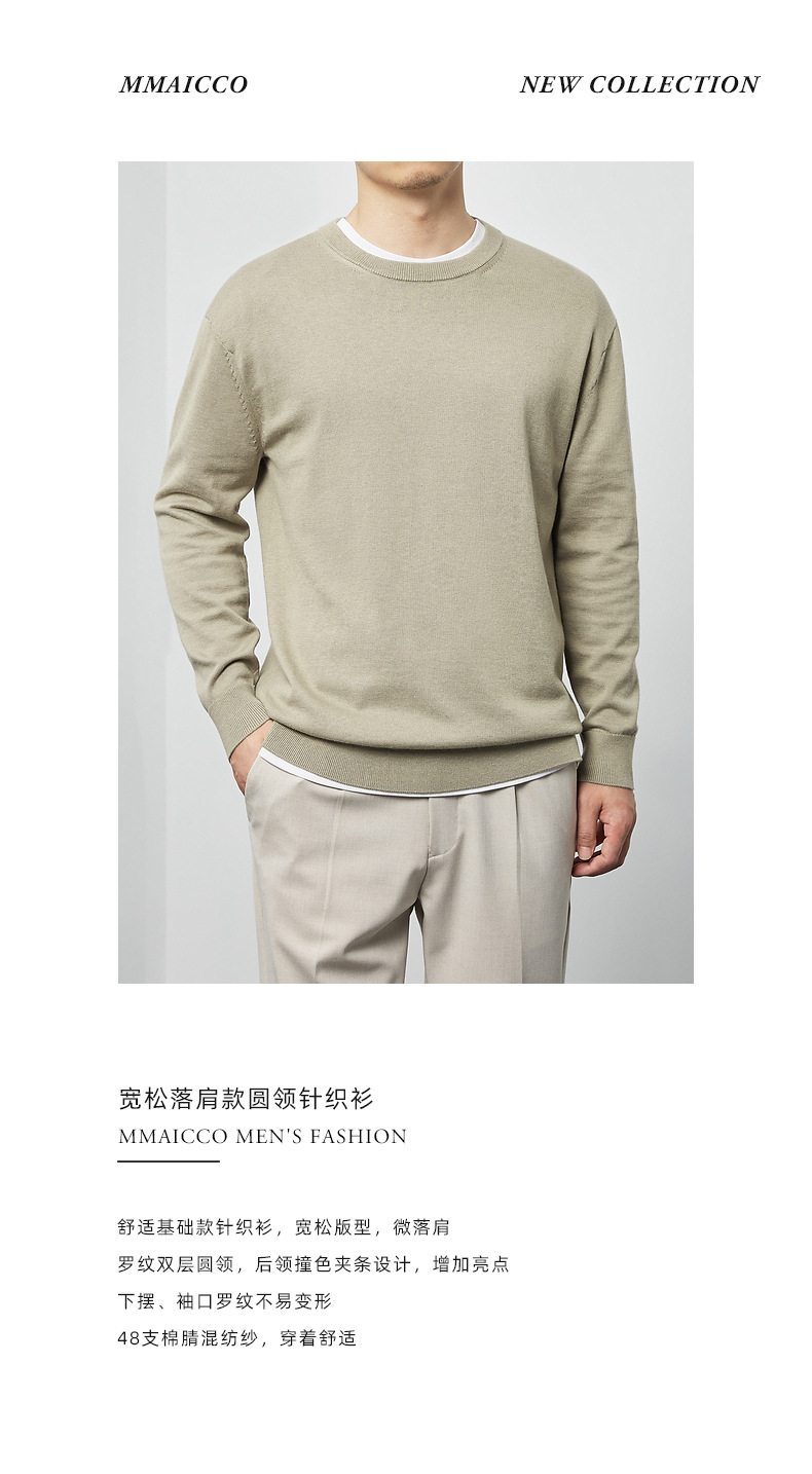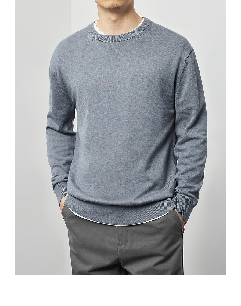 Momeck men's round-neck thin men's knitted sweater 2024 Autumn New style Basic base sweater for men 2338