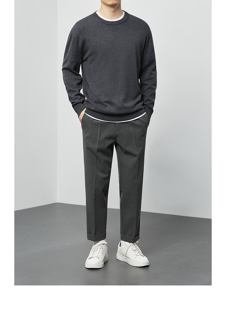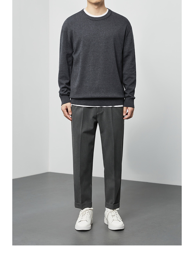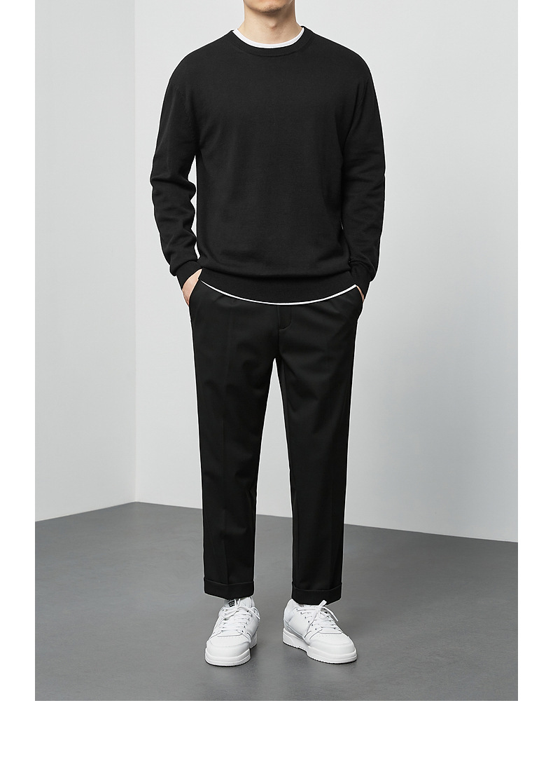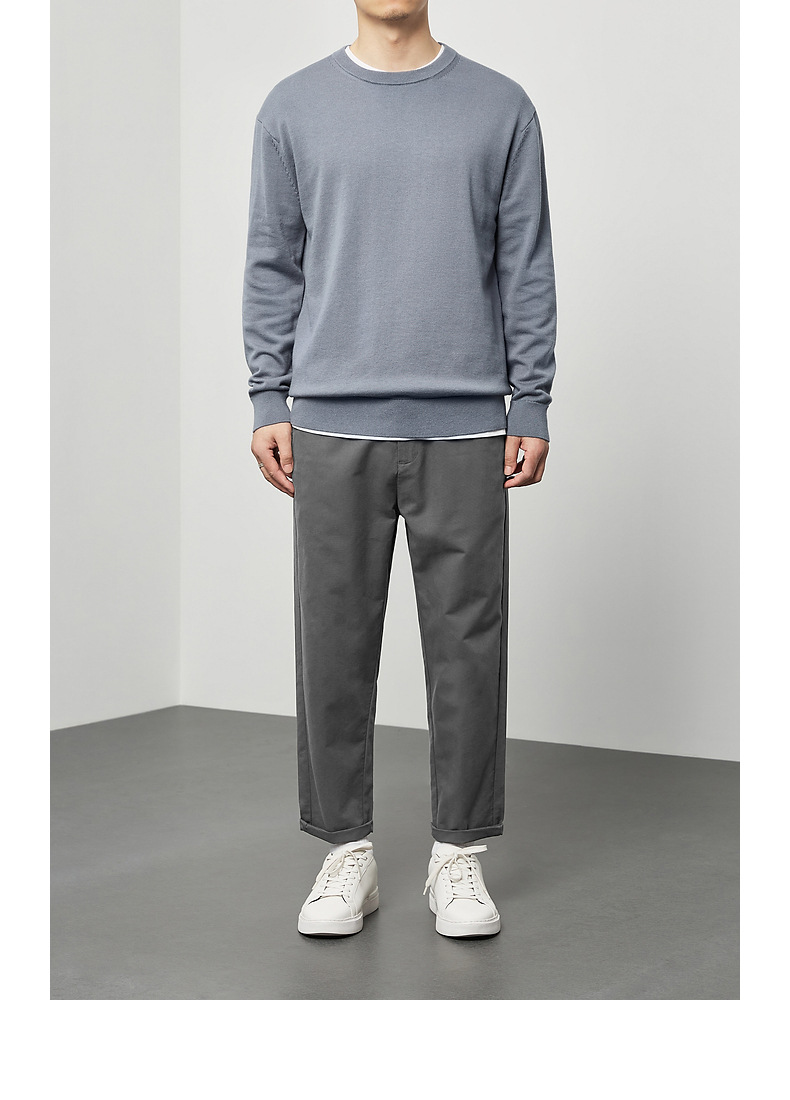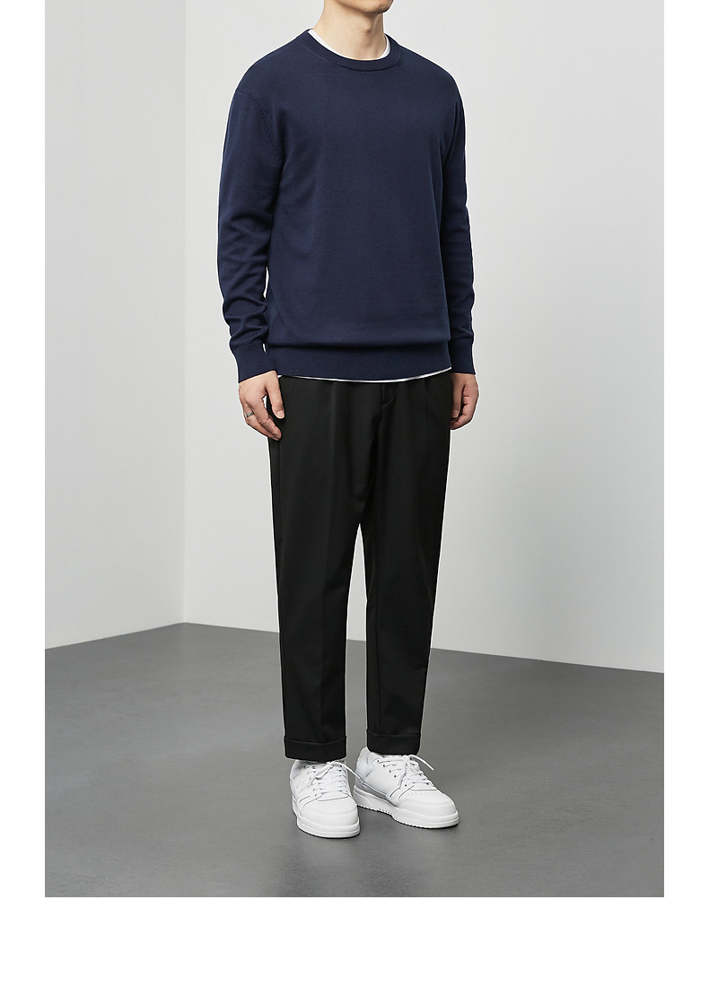 Momeck men's round-neck thin men's knitted sweater 2024 Autumn New style Basic base sweater for men 2338