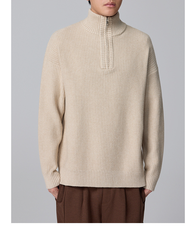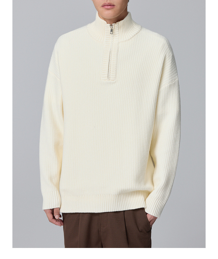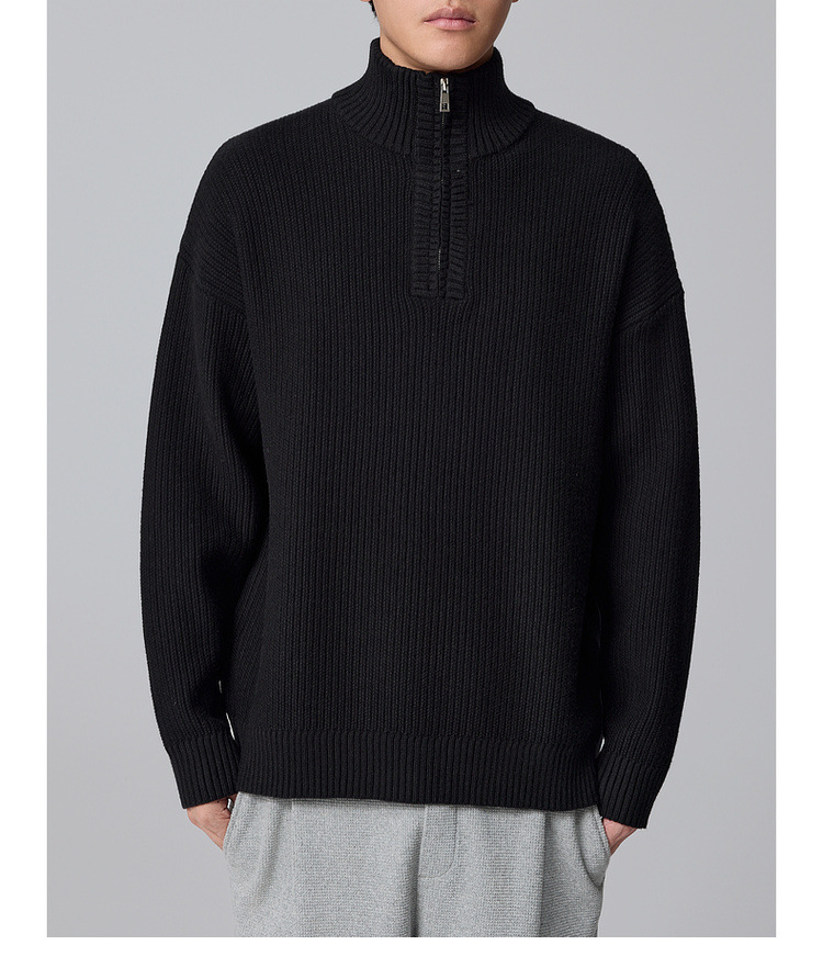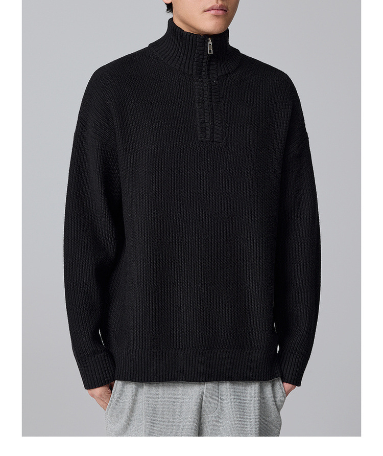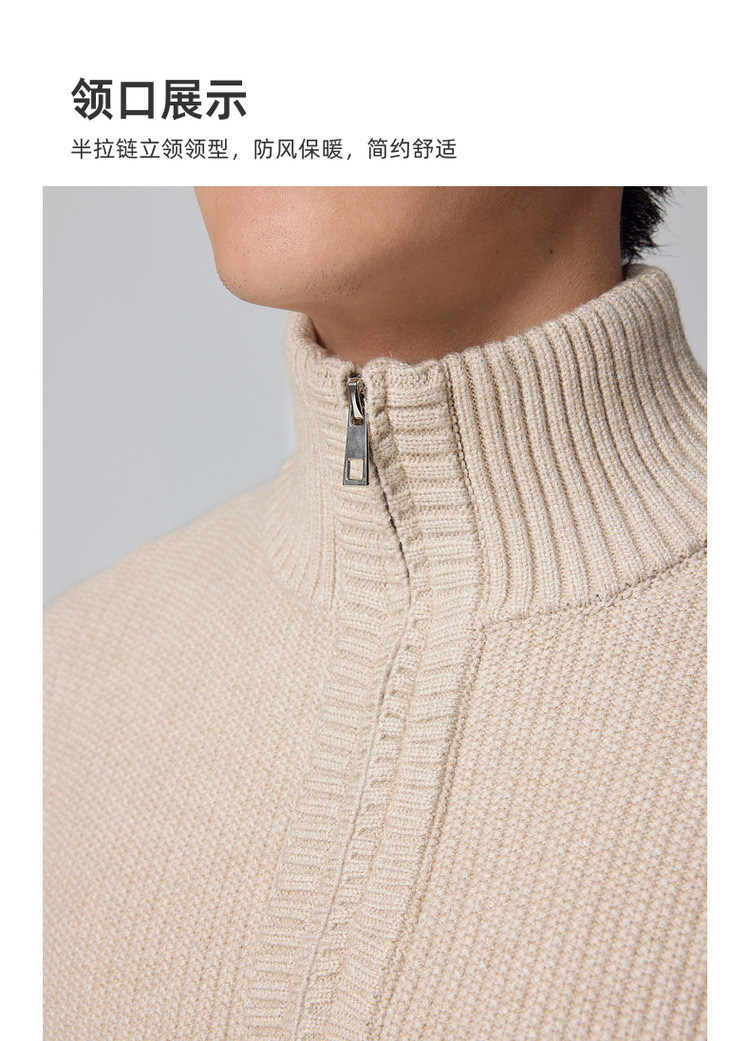 Momeck Men's semi-open zipper stand-up collar sweater for Winter 2024, new striped knitted sweater for men 21901