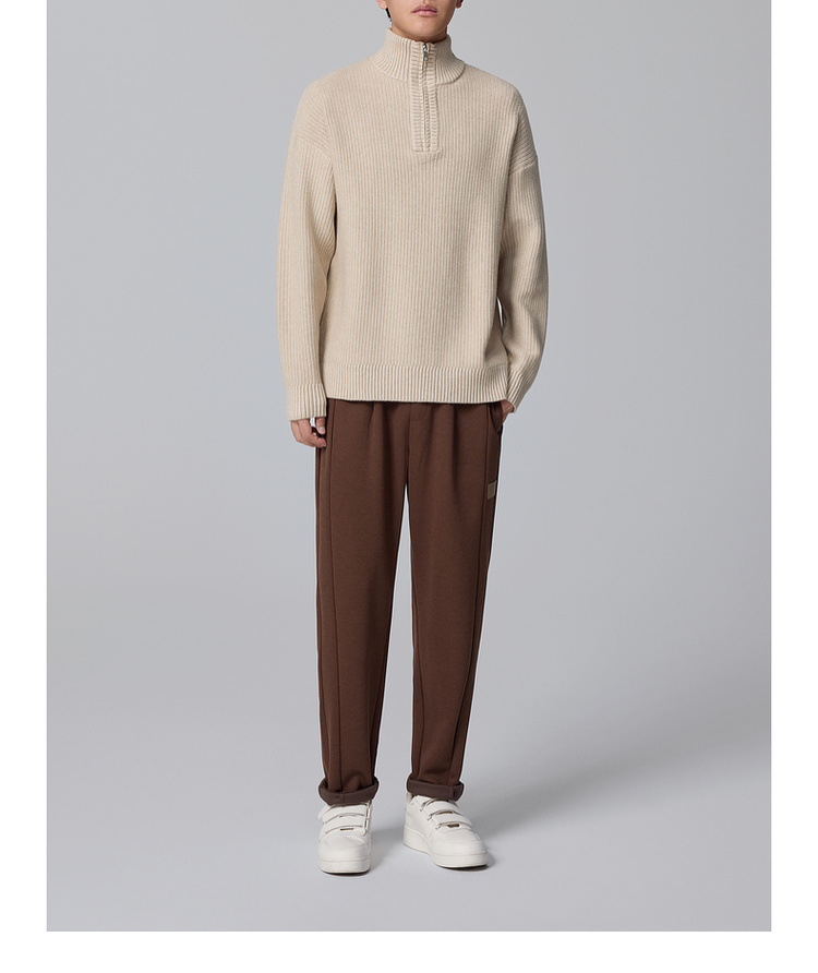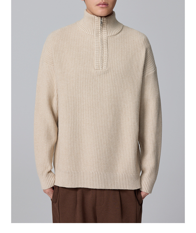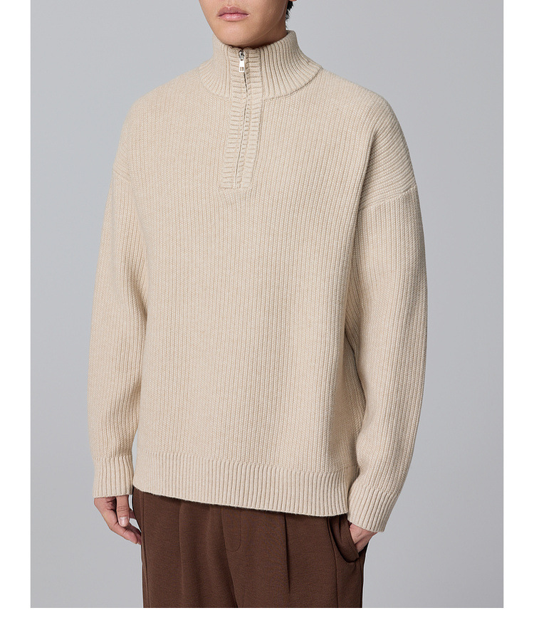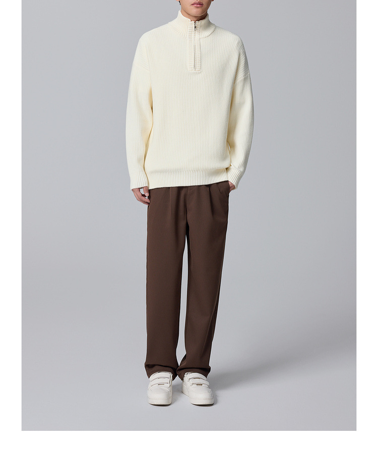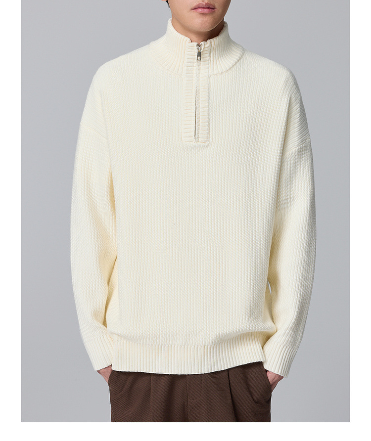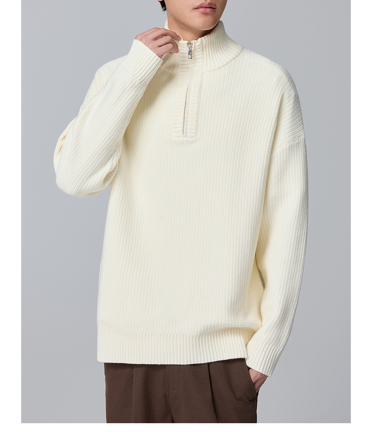 Momeck Men's semi-open zipper stand-up collar sweater for Winter 2024, new striped knitted sweater for men 21901