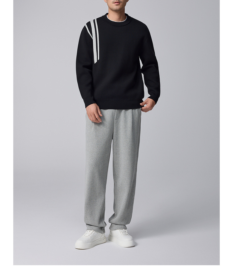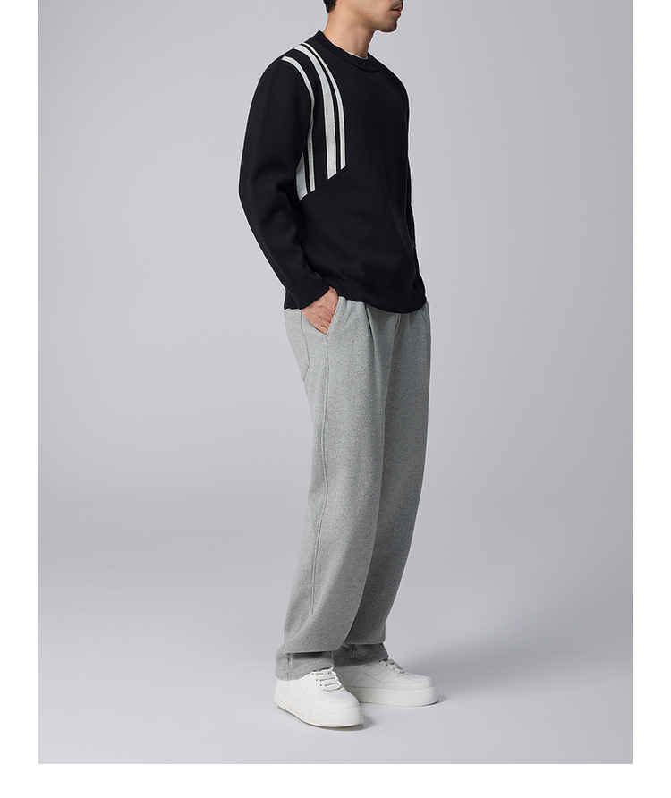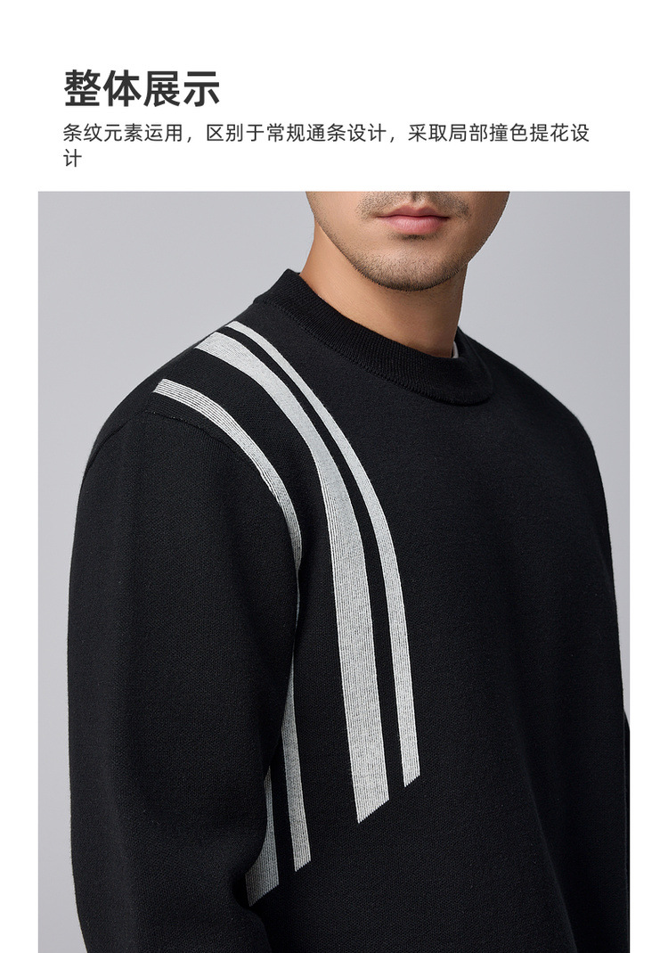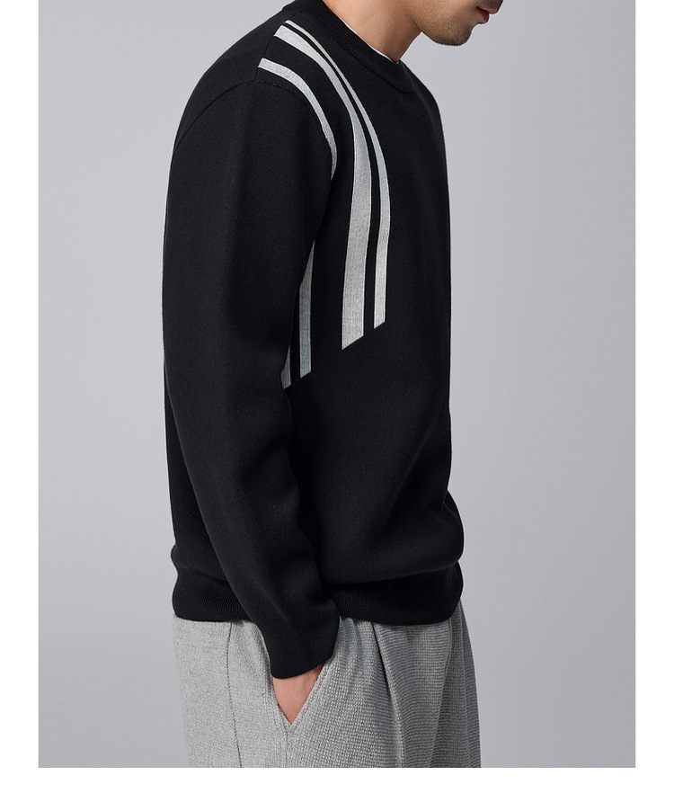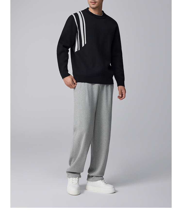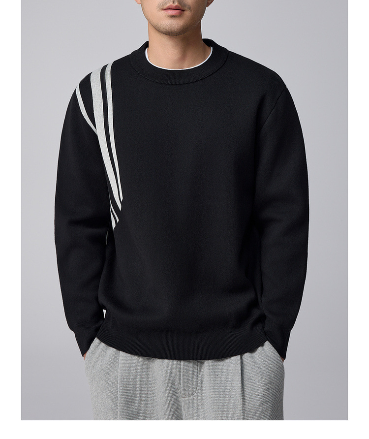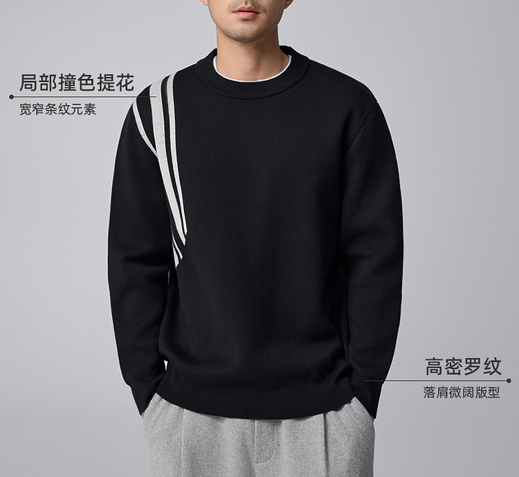 Momeck men's striped color-blocking knitted sweater for men 2024 Winter new round neck loose men's sweater 21835