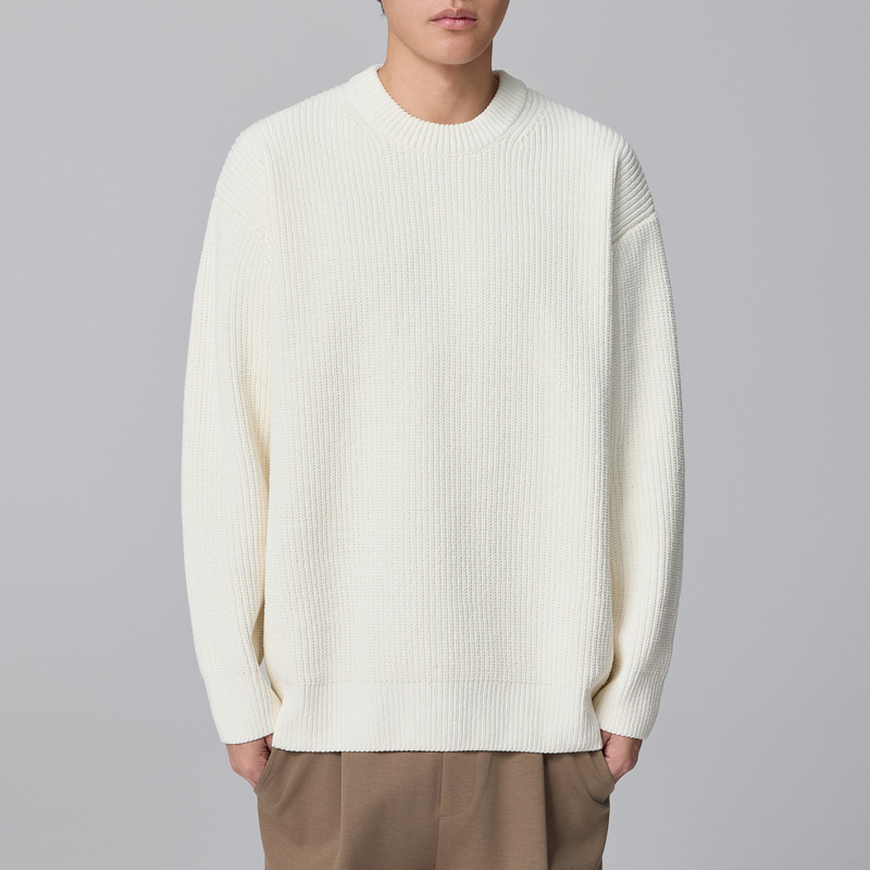 Momeck men's vertical texture knitted sweater 2024 Winter new round neck pullover sweater for men 21900