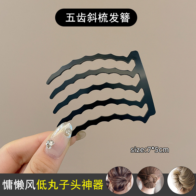 8# Five-toothed slanted Comb Hairpin - Black.