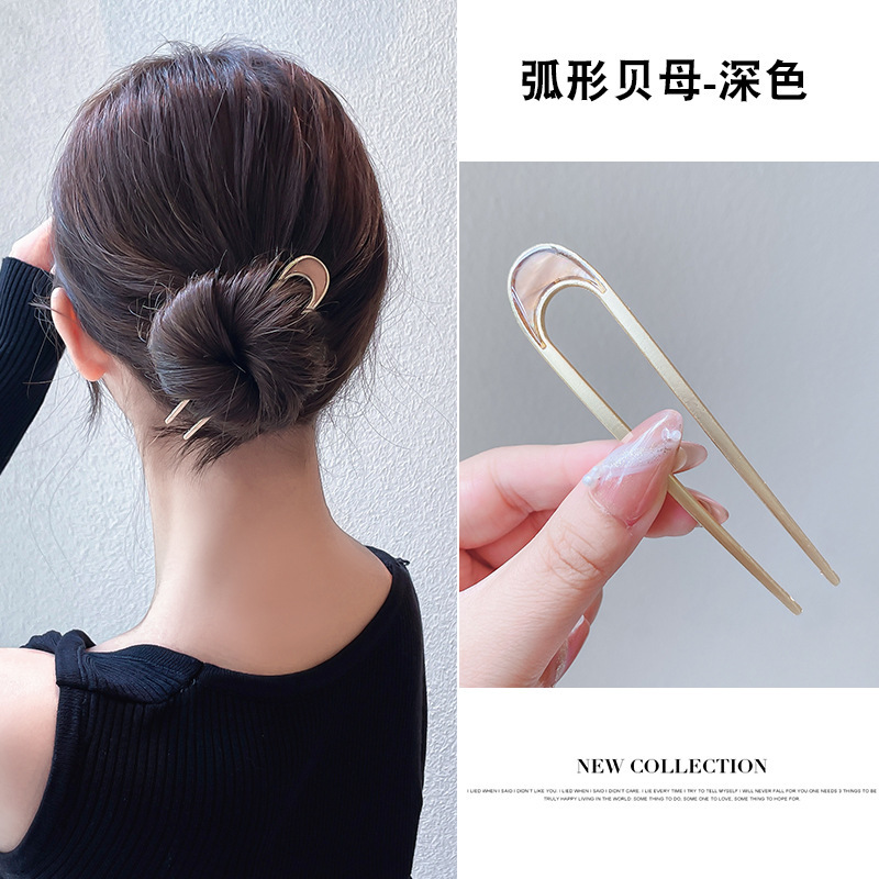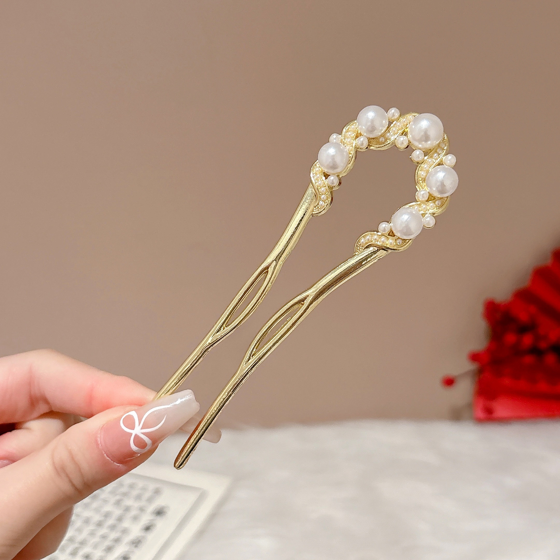 8# Hollowed-out pearl U-shaped hairpin