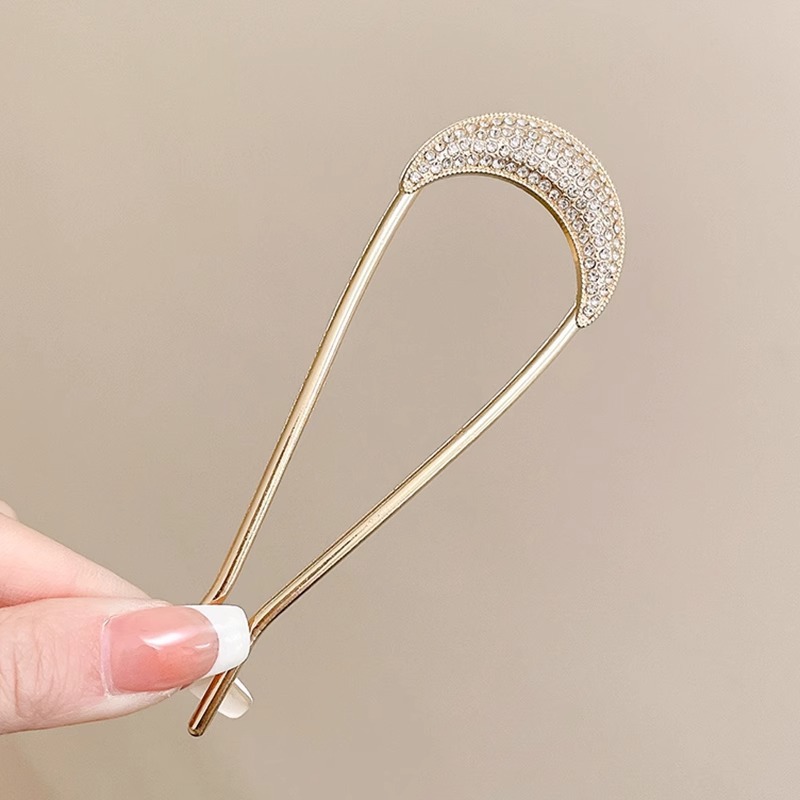 2# Golden rhinestone U-shaped hairpin.