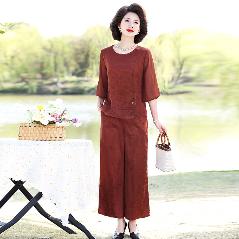 New Chinese-style summer set for middle-aged moms, 2024 new summer casual and stylish thin mom outfits