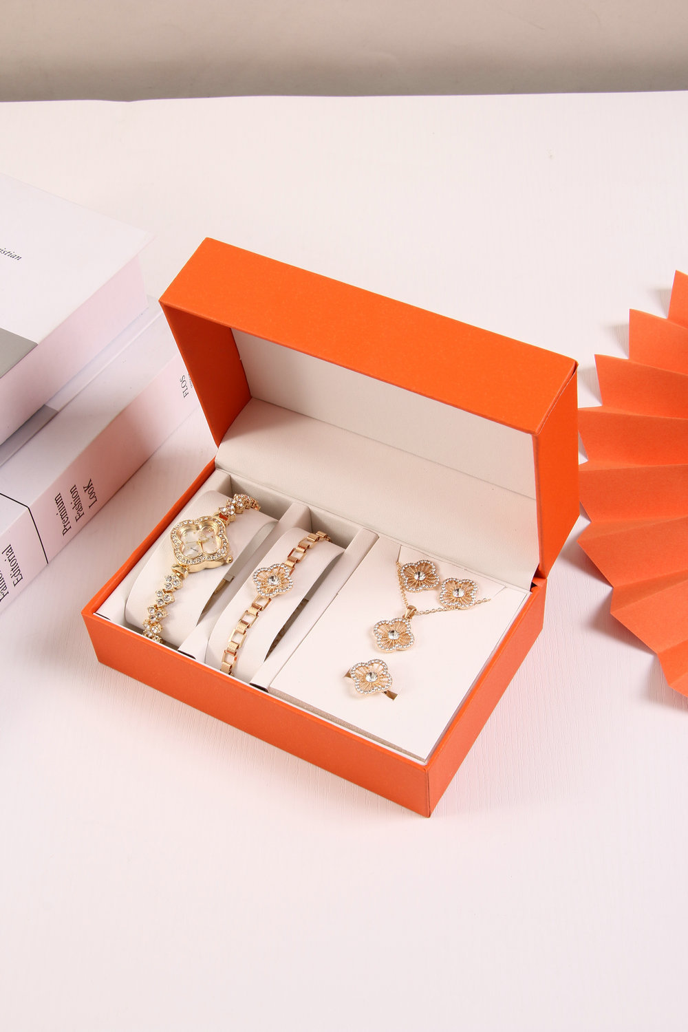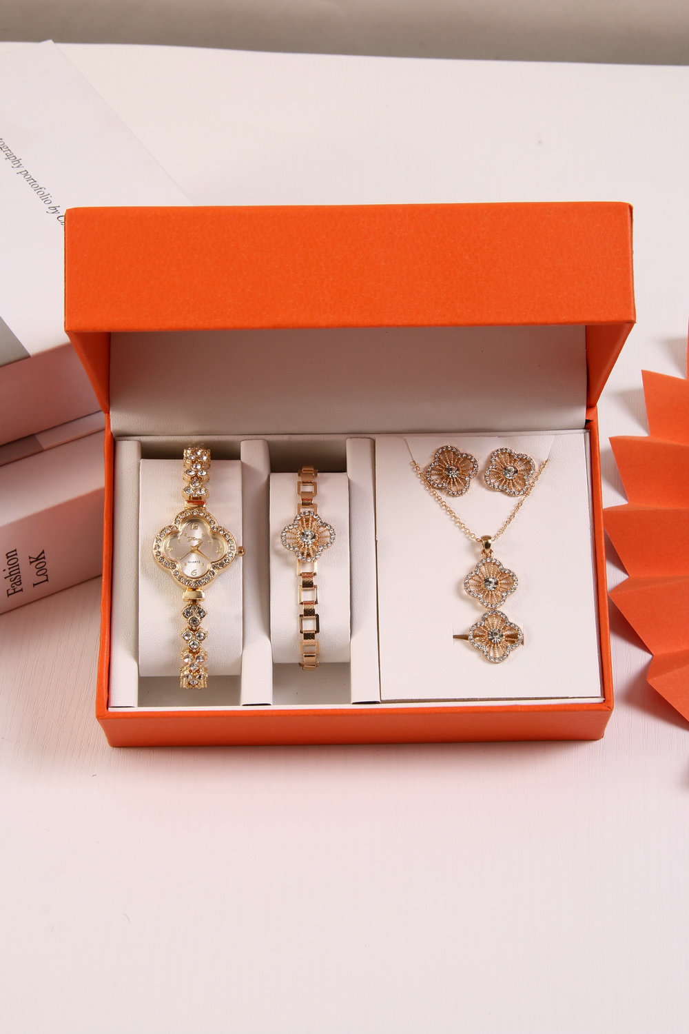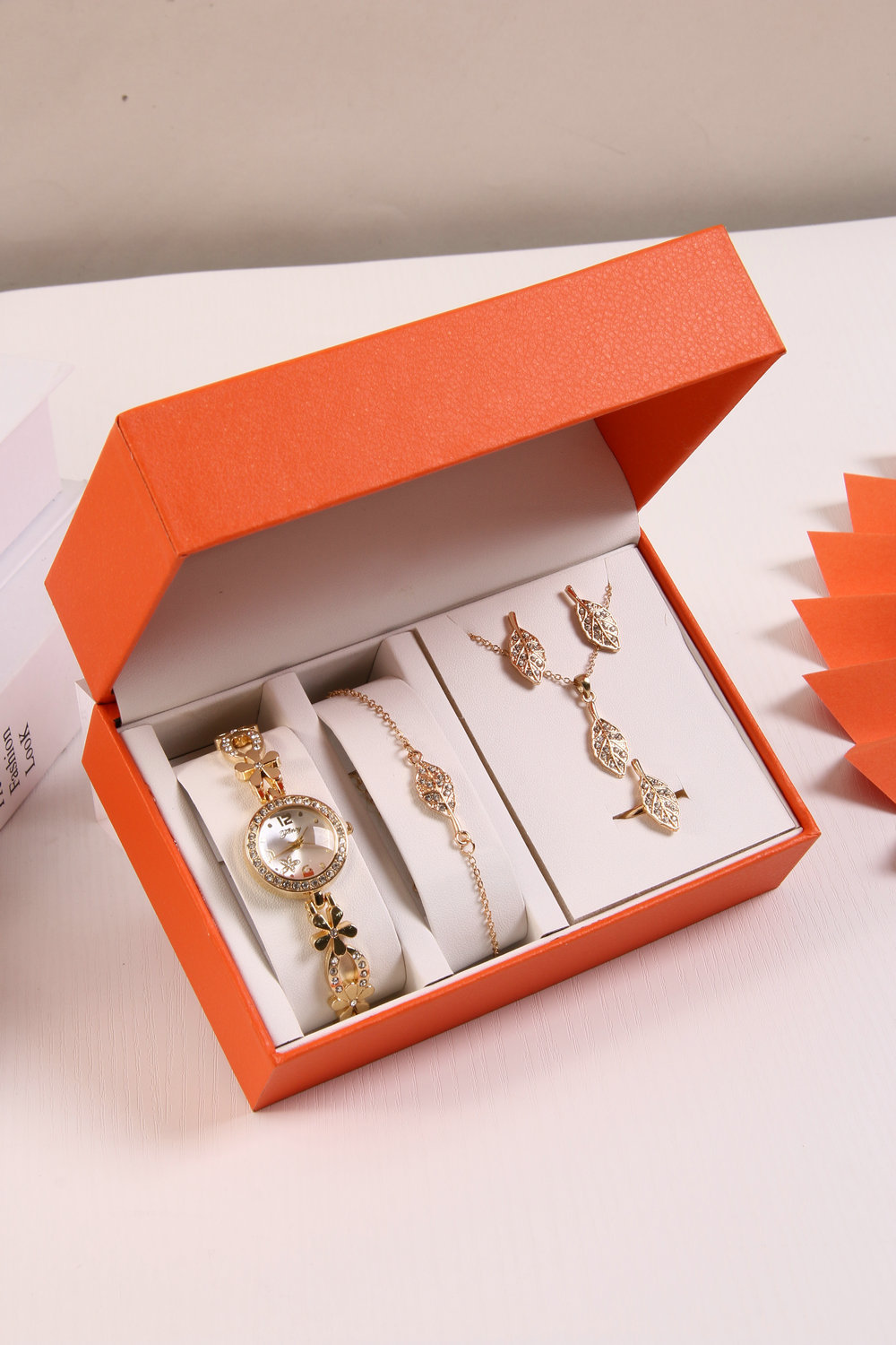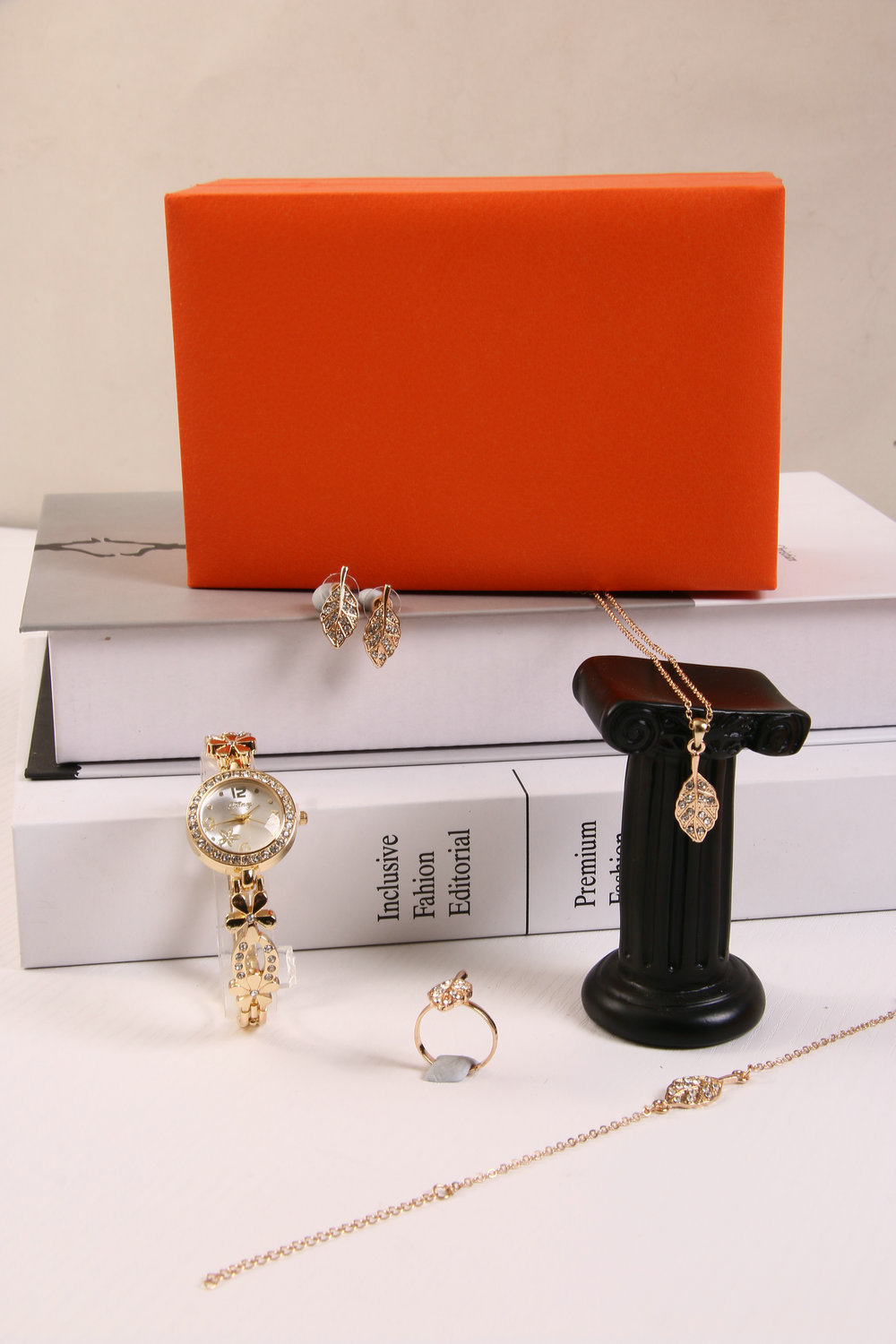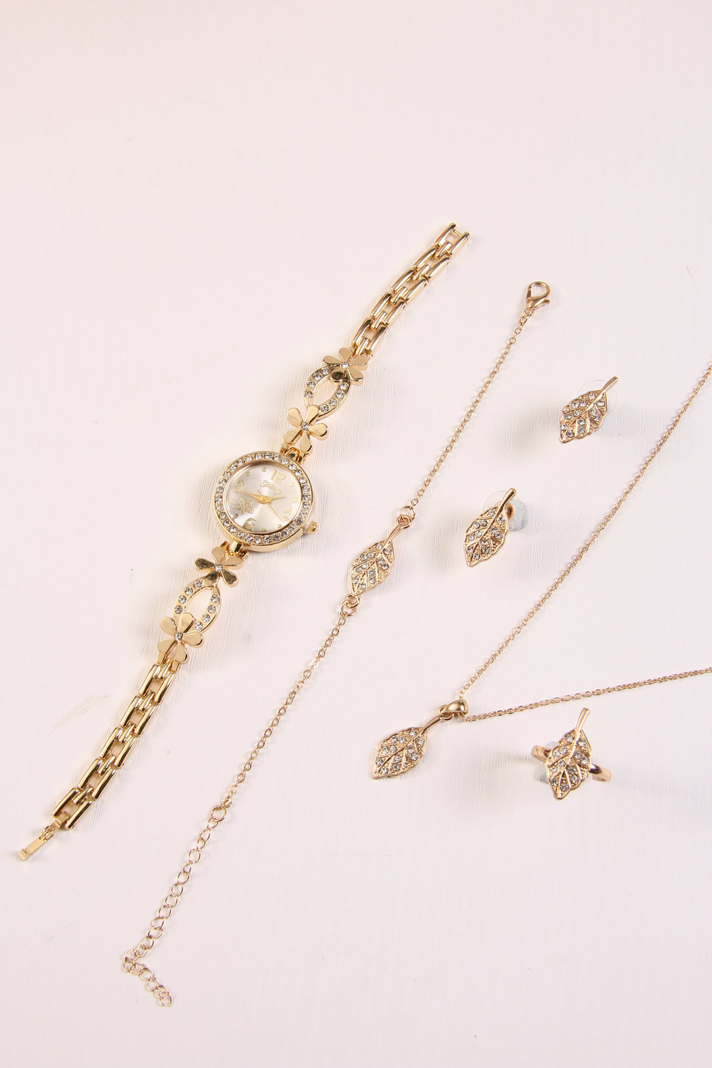 Bracelet watch + bracelet + necklace + ring + stud earrings
