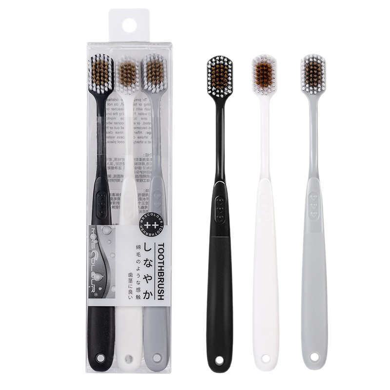 Mountain-shaped convex surface toothbrush, soft bristles, high-end tricolor toothbrush, gum protection, adult wide head, couple, household toothbrush manufacturer wholesale