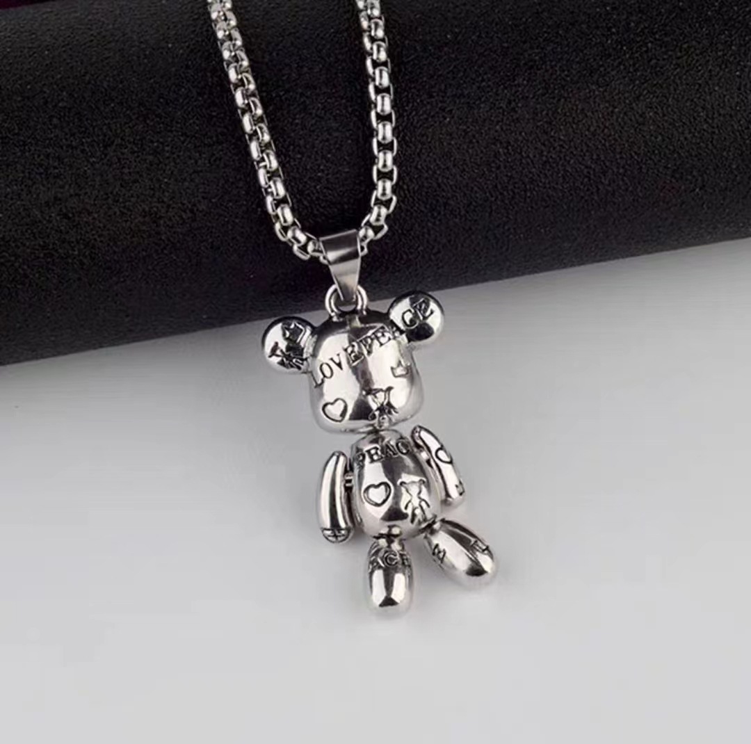 Movable violent bear titanium steel necklace, hip-hop men's trendy punk couple sweater chain, women's niche sweatshirt accessory chain