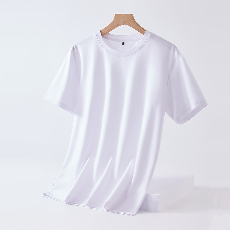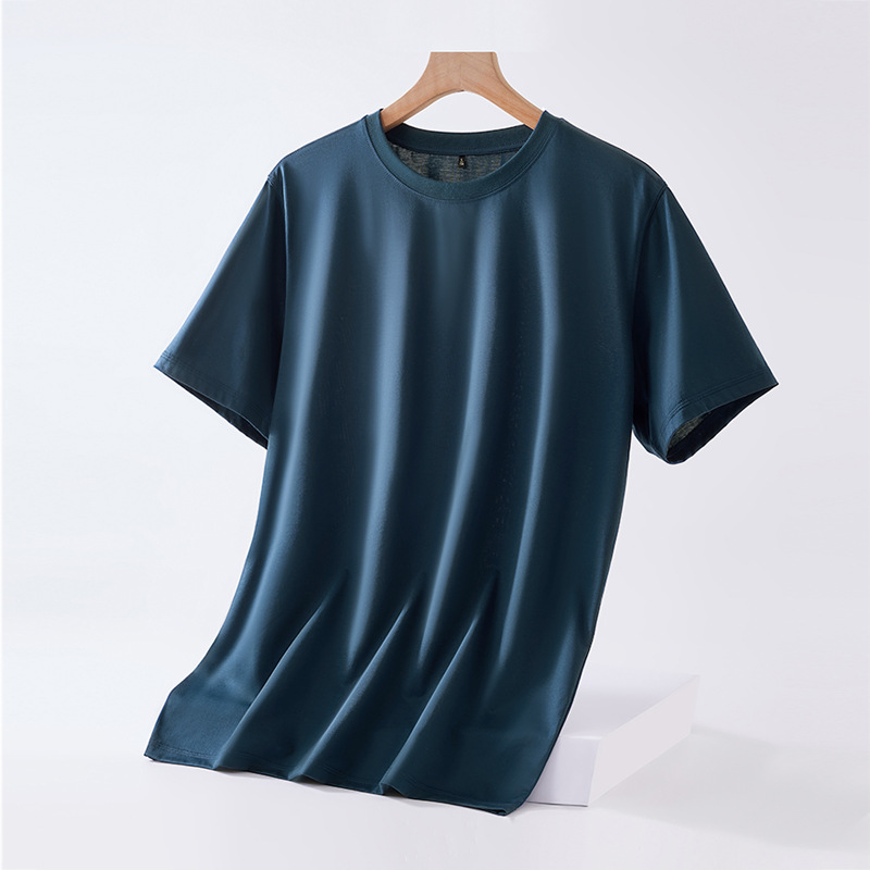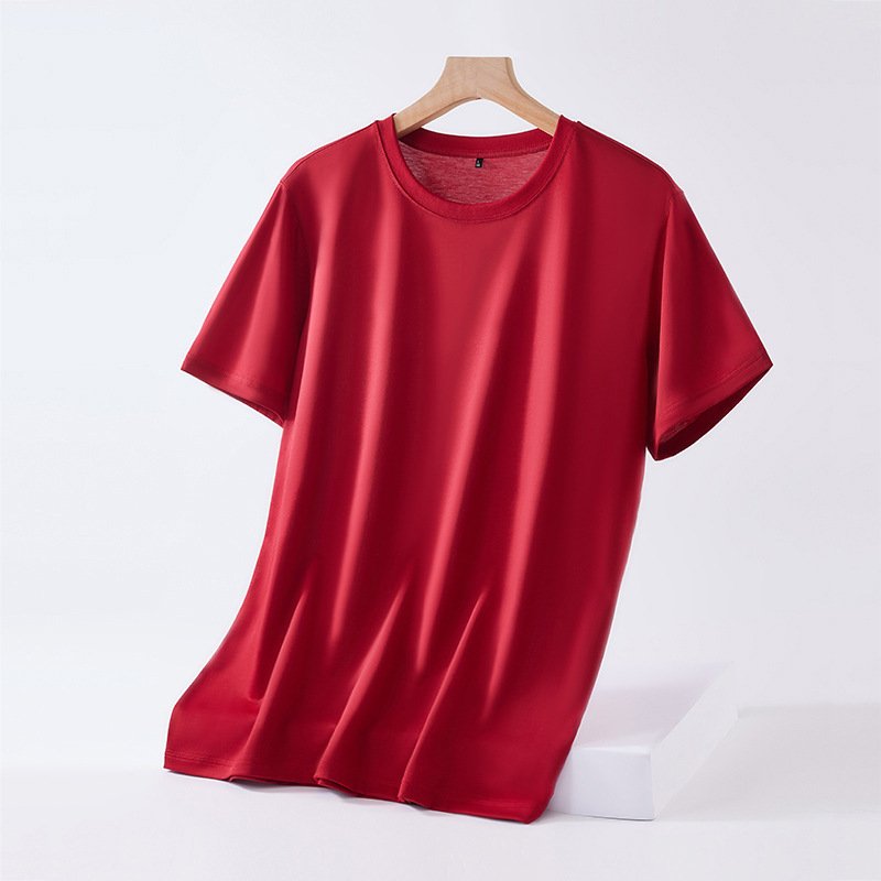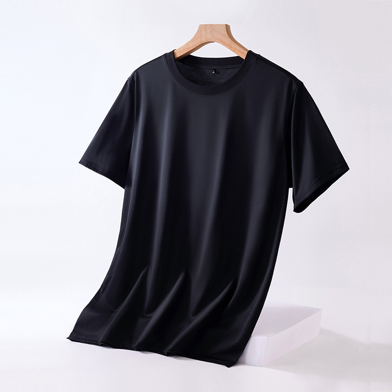 Mulberry silk short-sleeved T-shirt for men, solid color mercerized cotton round-neck base layer, new Spring/Summer 2023 cool high-end T-shirt