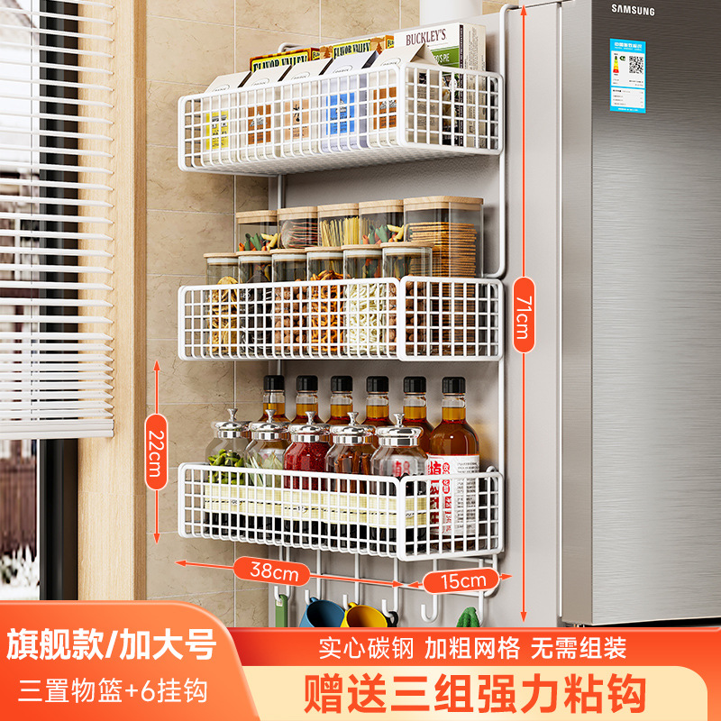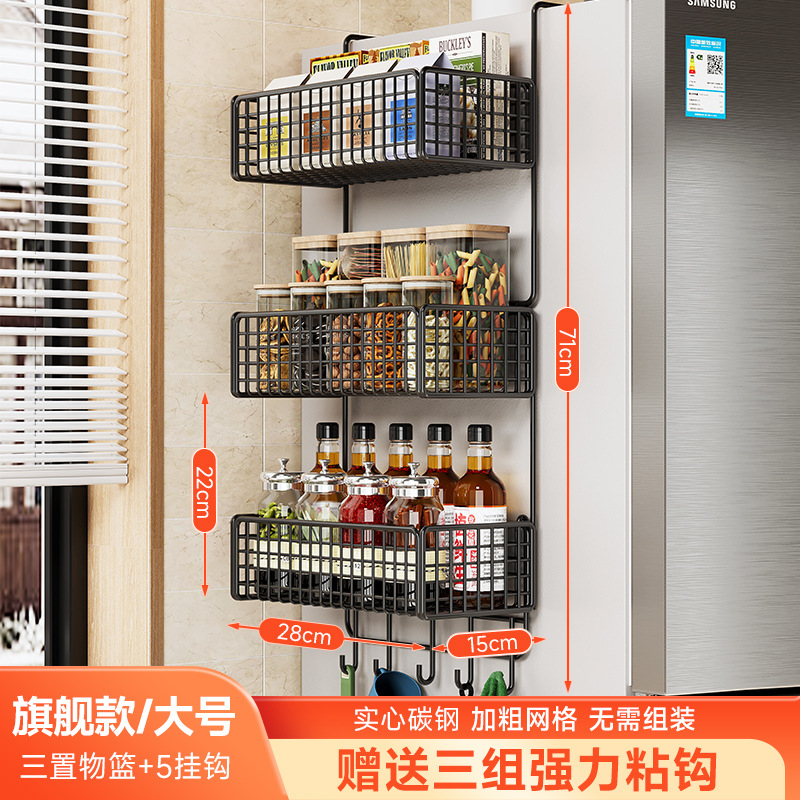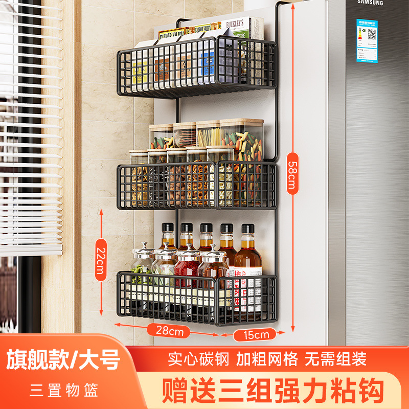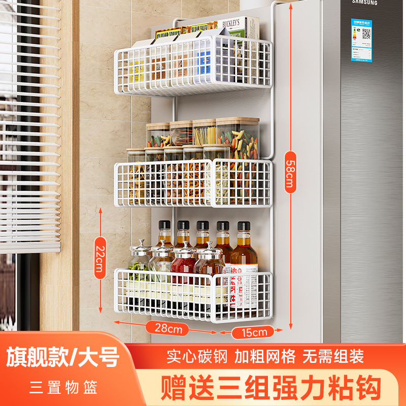 Multi-functional refrigerator rack, side-hanging refrigerator rack, kitchenware storage rack, tissue paper preservation bag, seasoning storage rack