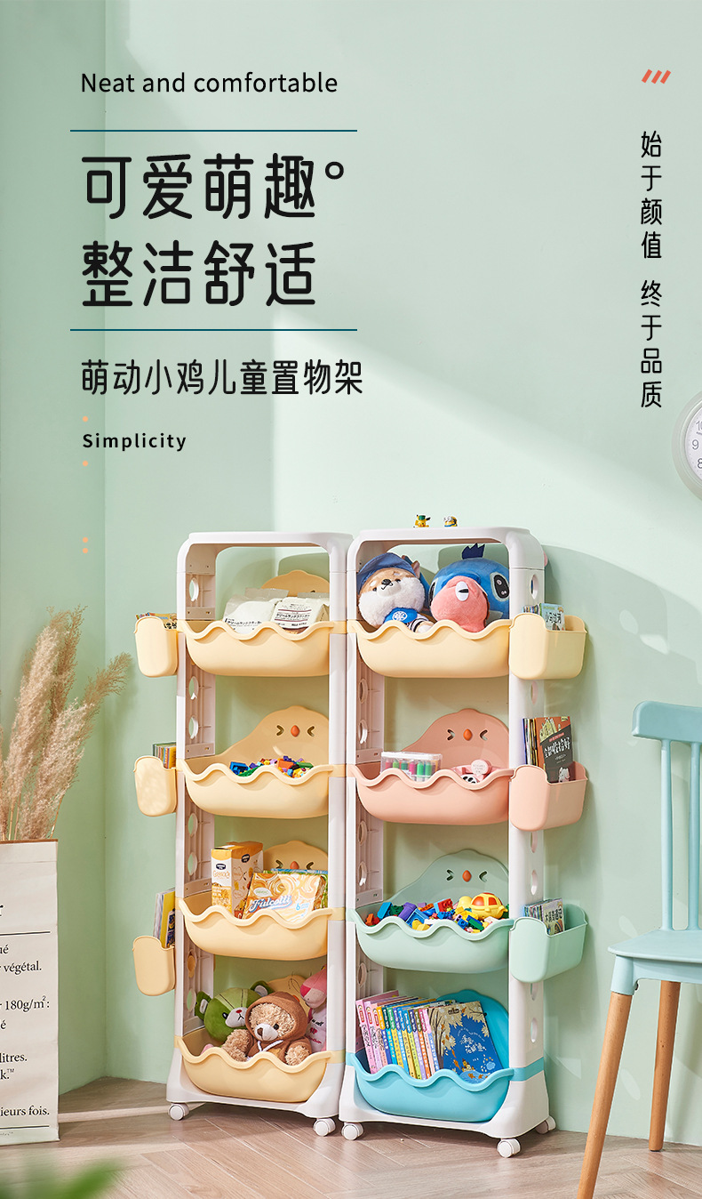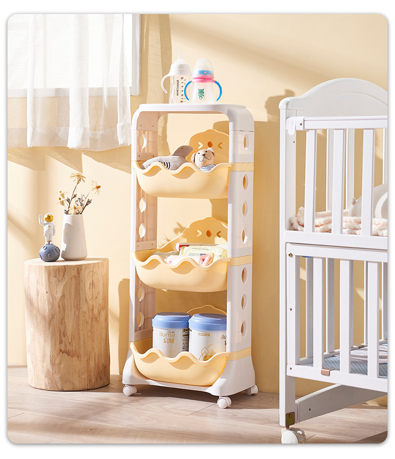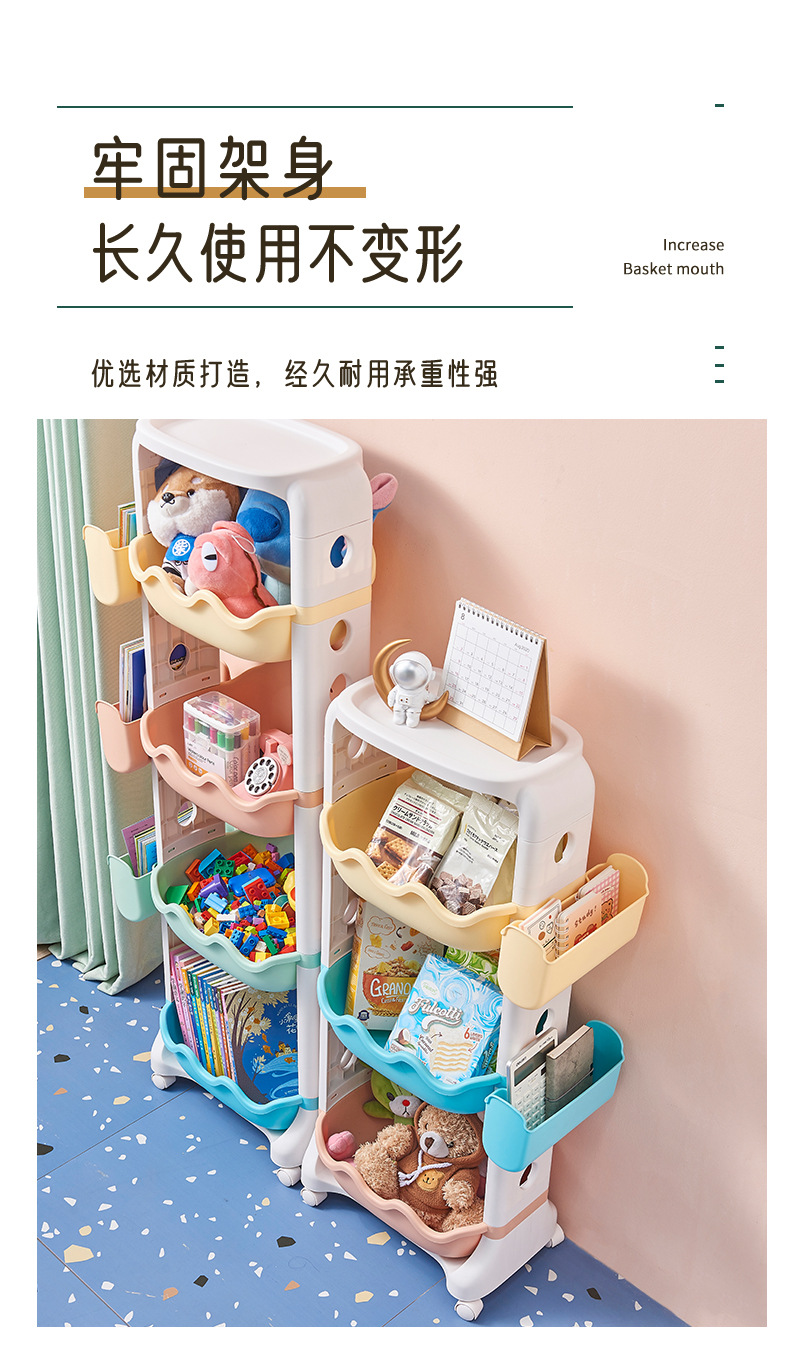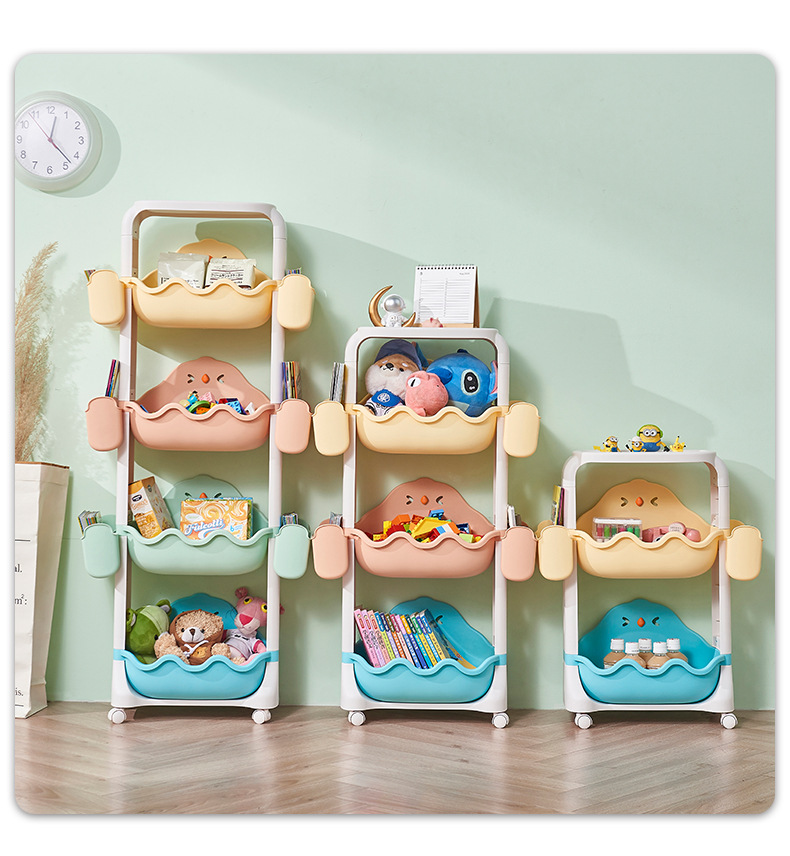 Multi-layer storage rack, kitchen and bathroom plastic roller storage basket, children's cartoon toy organizing rack