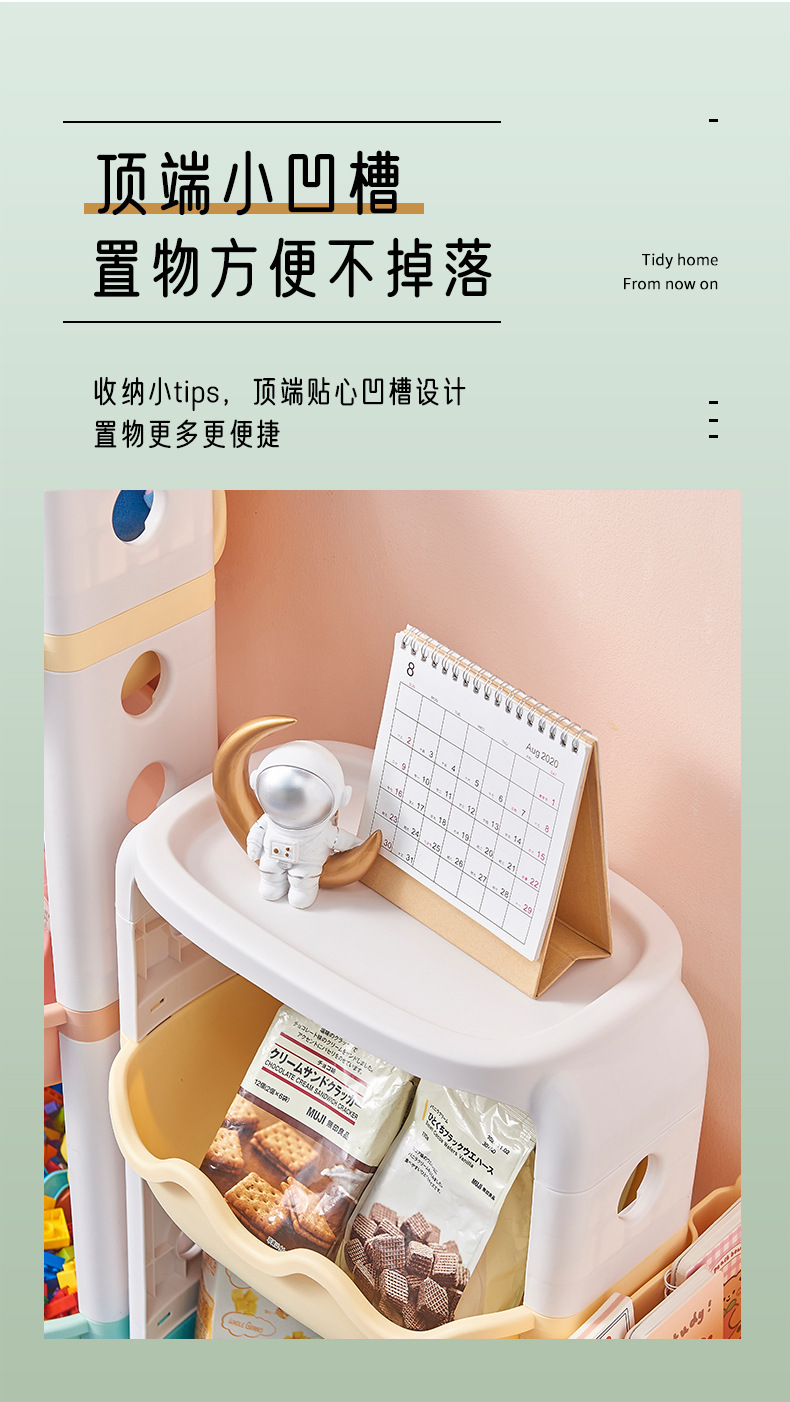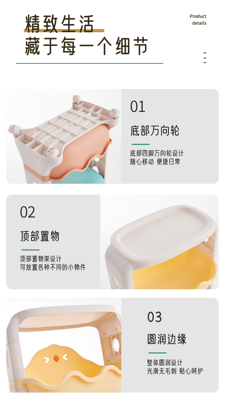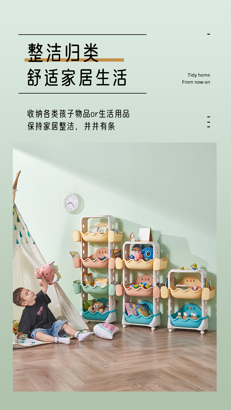 Multi-layer storage rack, kitchen and bathroom plastic roller storage basket, children's cartoon toy organizing rack
