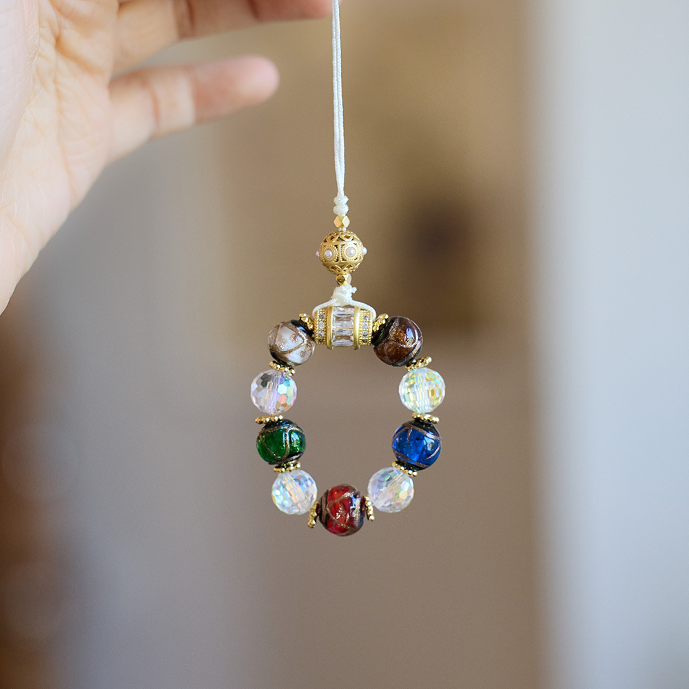 Name: Incense Ash Glass Gold Leaf Glass Mobile Phone Chain Pendant