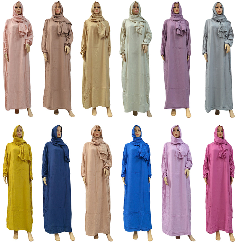 Muslim solid-color fashionable long dress, elegant women's scarf style, hooded pure cotton long dress, long robe, dignified prayer robe, ethnic style, conservative traditional women's long robe