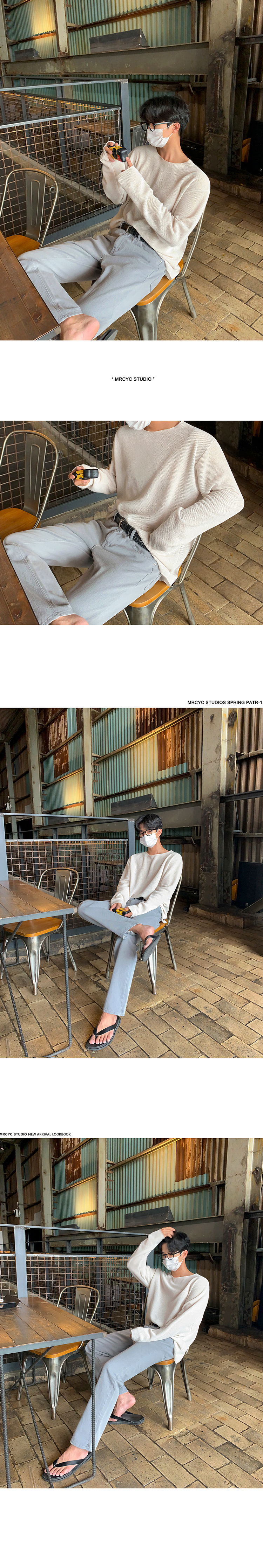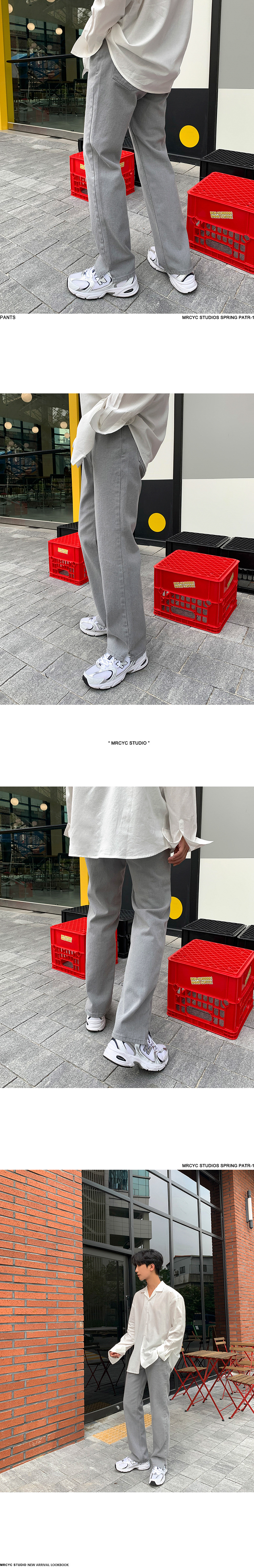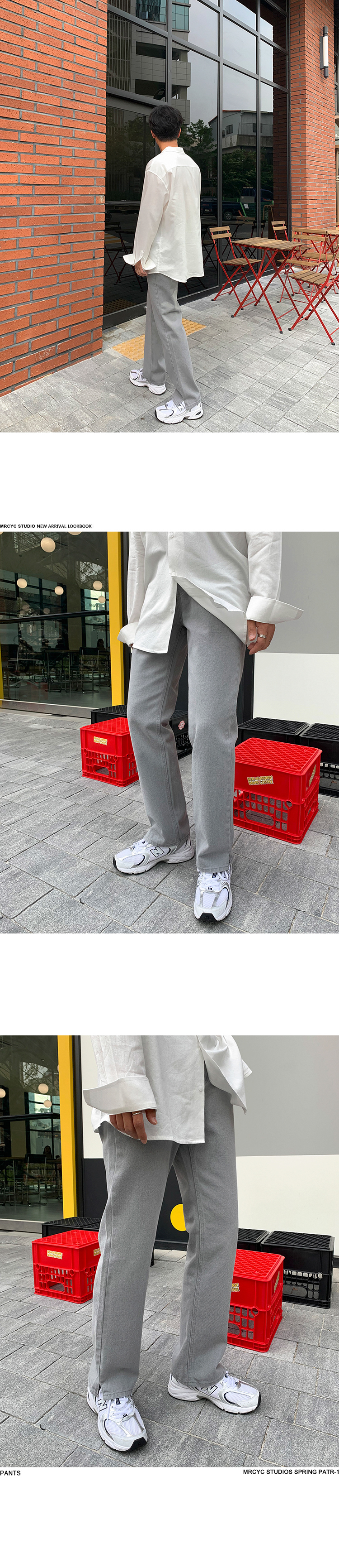 MYQ men's grey jeans, trendy Korean style split loose straight-leg pants, autumn slim-fit casual long pants