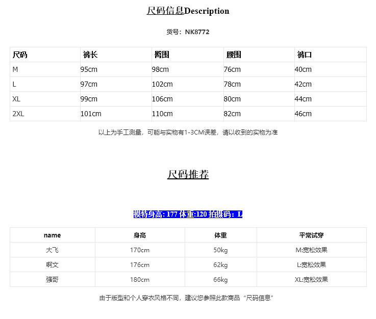 Reference: Model height 177 cm, weight 120 cm, trying on L