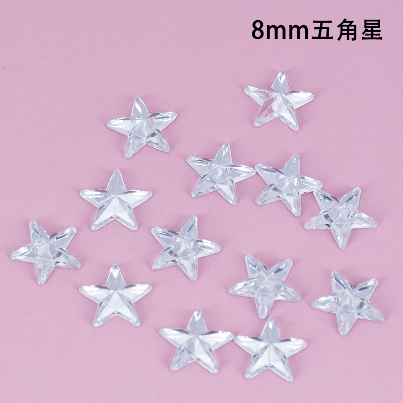 Flat-bottomed five-pointed star, 8mm white (100 pieces)