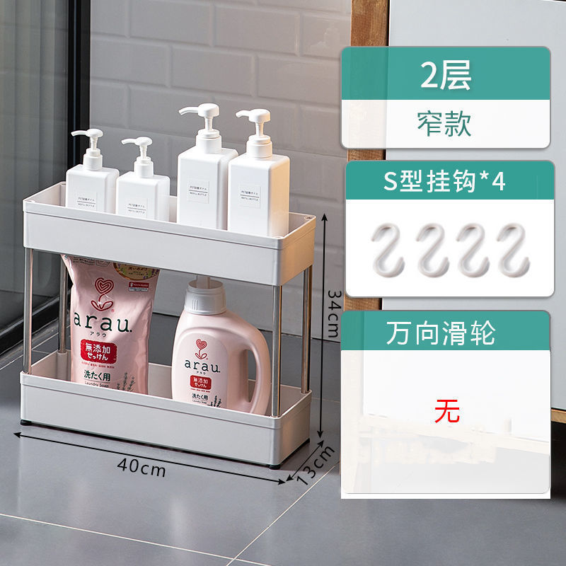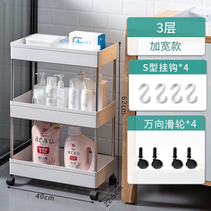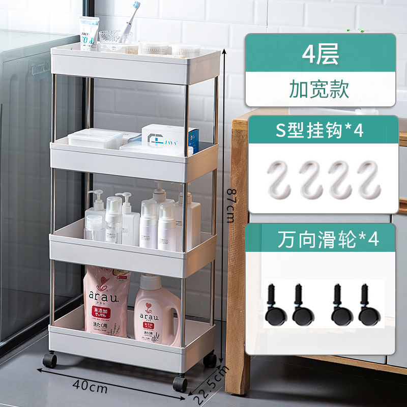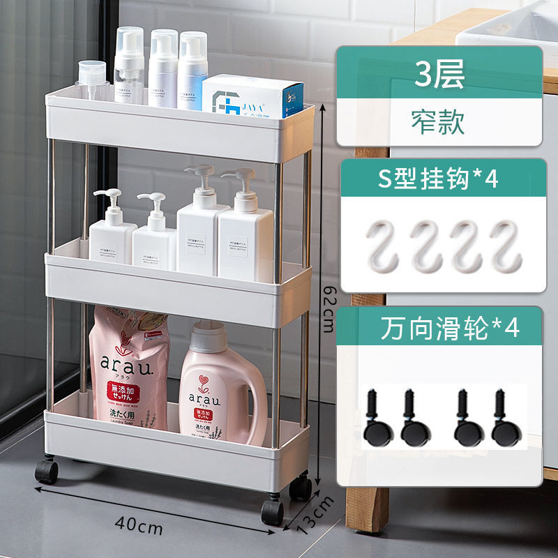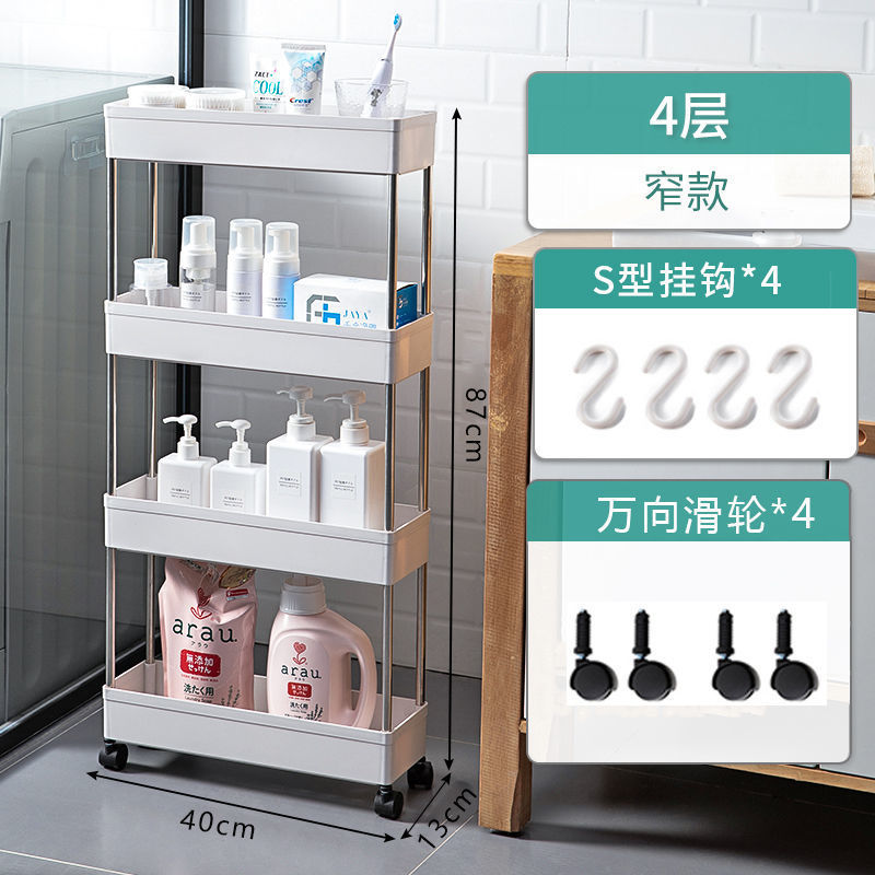 Narrow movable storage rack, kitchen floor-standing storage rack, multi-layer wheeled bathroom plastic rack