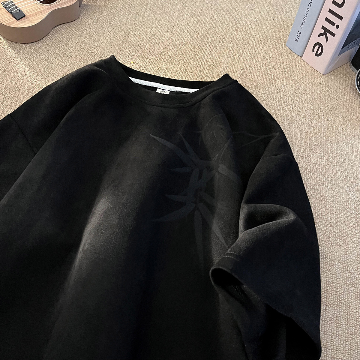 NASA's new Chinese-style short-sleeved T-shirt for men in summer is a heavyweight brand with pure cotton and bamboo prints. It features loose half-sleeved sleeves and a traditional Chinese style