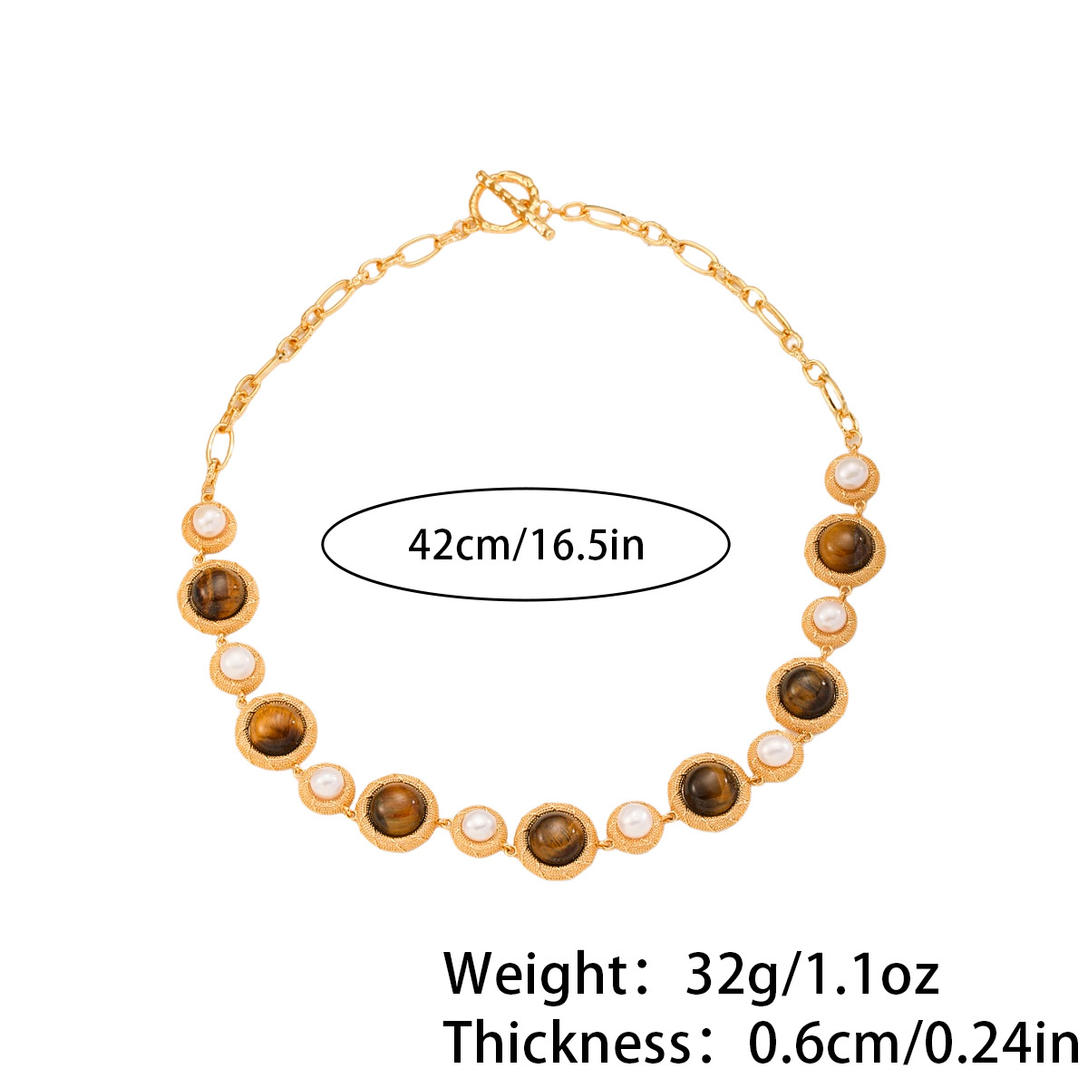 Nasha Cross-border Exclusive Maillard color series freshwater pearl tiger's eye stone necklace and earring Set Autumn and Winter jewelry set