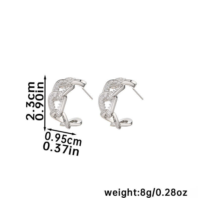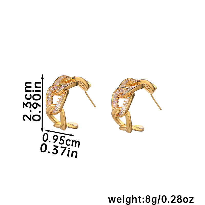 Nasha European and American copper-plated 18K real gold interlocking earrings for women with micro-inlaid zircon gold plating, high-end and niche earrings