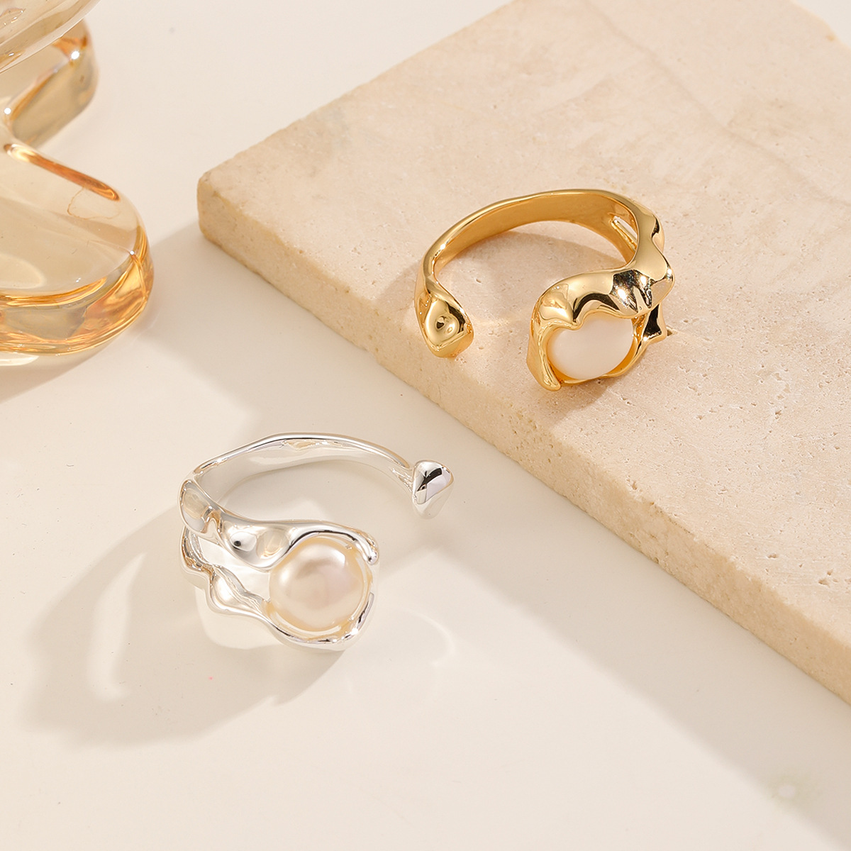 Nasha's cross-border freshwater pearl ring from Europe and America is a high-end, non-fading, and stylish ins ring with adjustable cuffs
