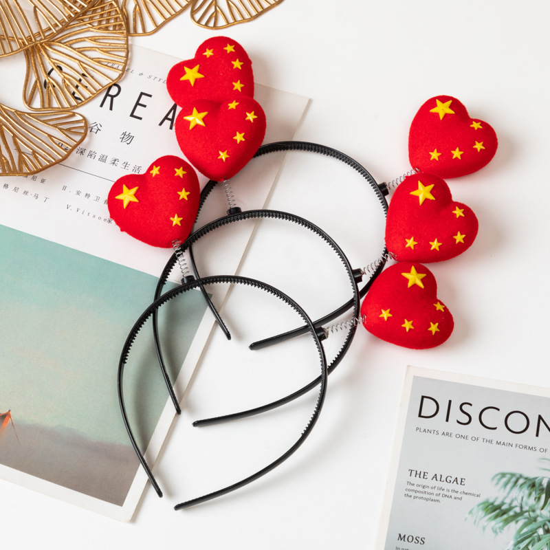 National Day love hair bands, children's hair clips, national flag hair clips, Five-starred Red Flag headwear, cute hair accessories, five-pointed stars, National Day