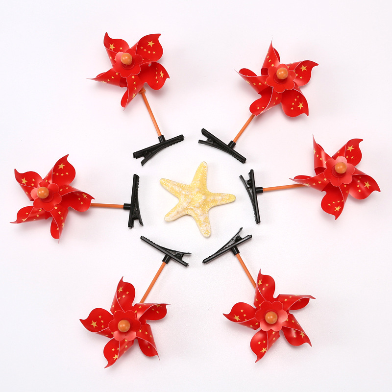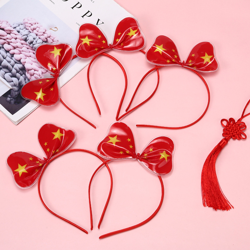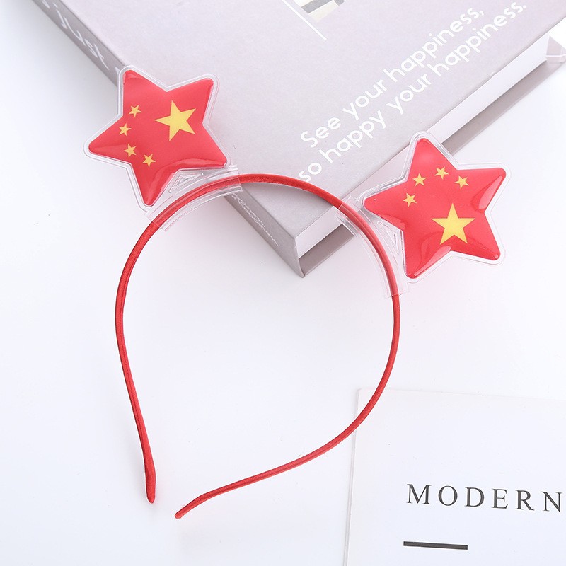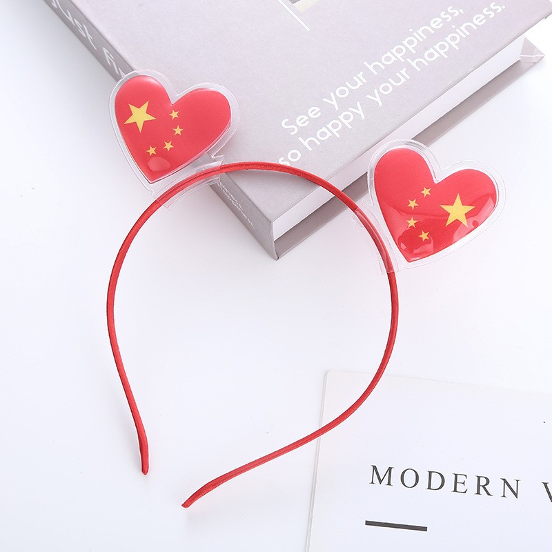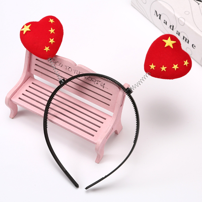 National Day Red Flag Heart-shaped spring hair clip, Five-pointed star National flag headband, ground push scanning code small gift, National Day hair accessory