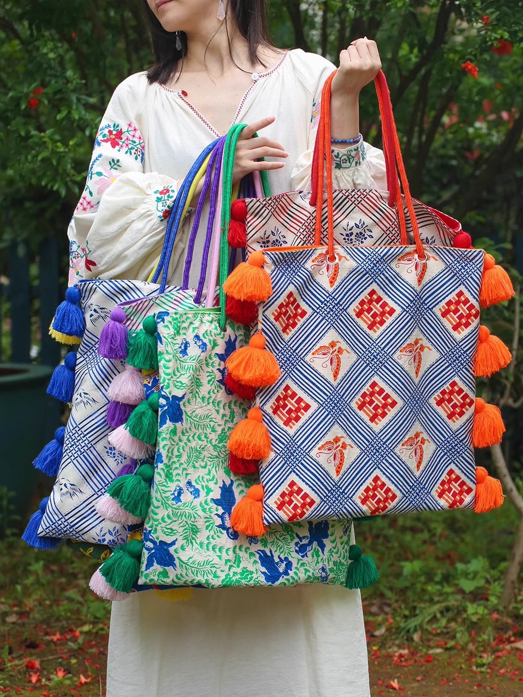 "National Trend and style Su large-capacity underarm color-blocking national style single-shoulder bag 2025 Spring/Summer Original canvas bag.