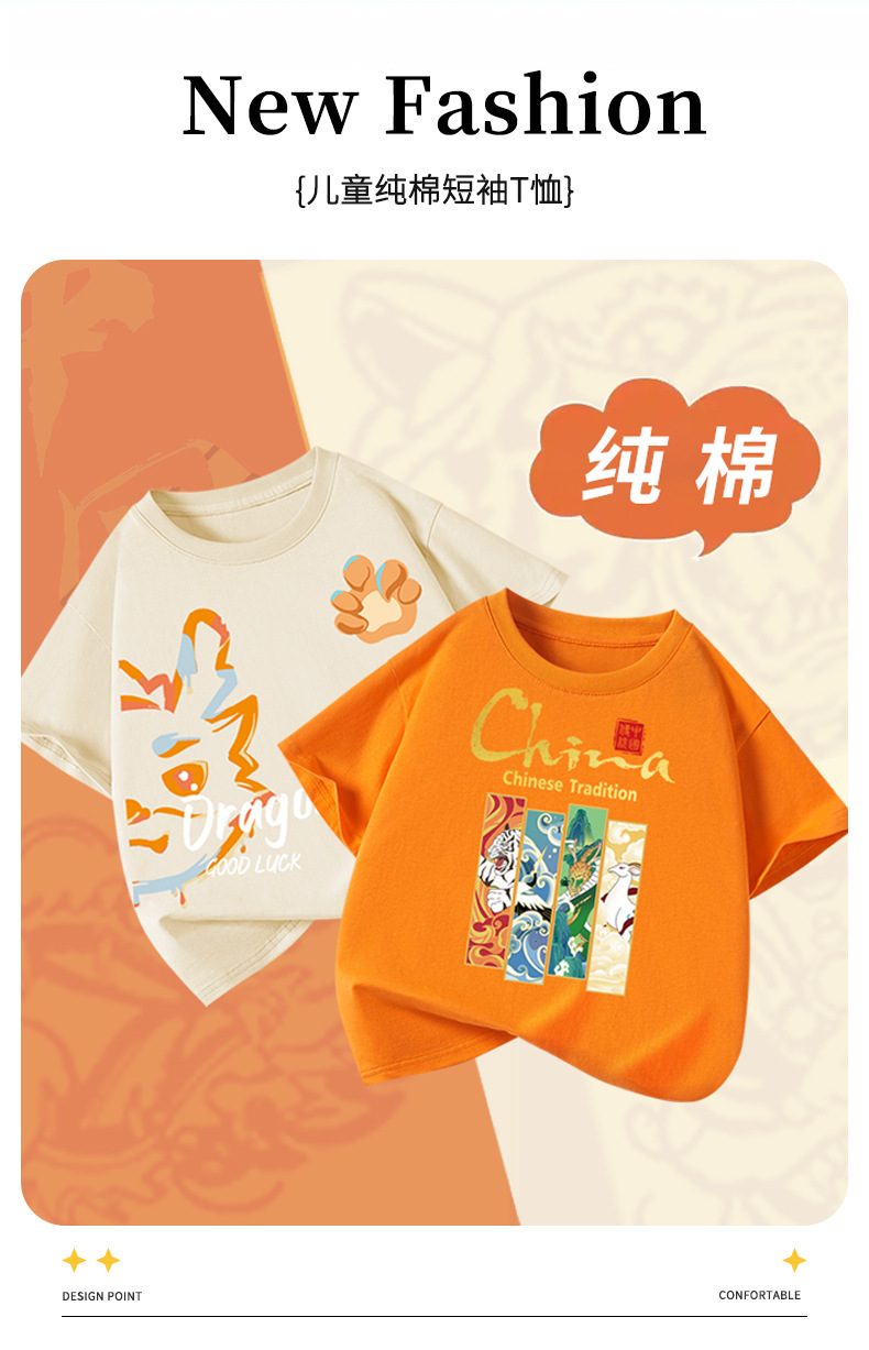 "National trend children's clothing, boys' short-sleeved T-shirt, pure cotton summer 2025 new style for boys, national trend for going out, half-sleeved children's top.