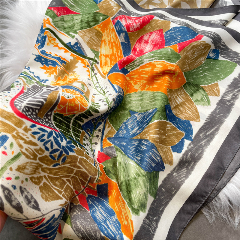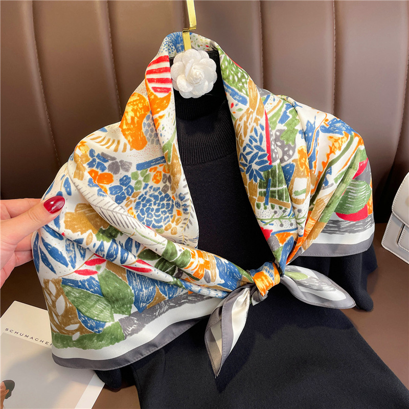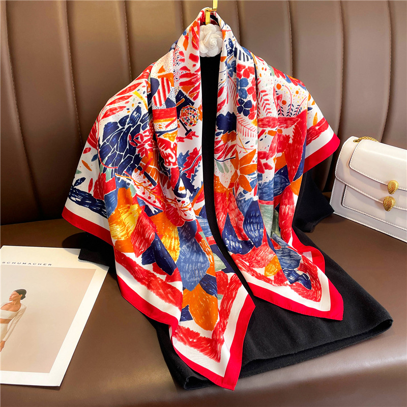 "National trend colorful large square scarf for women 2022 new style scarf, silk scarf, travel sun protection shawl, headscarf, luxurious and elegant silk scarf.