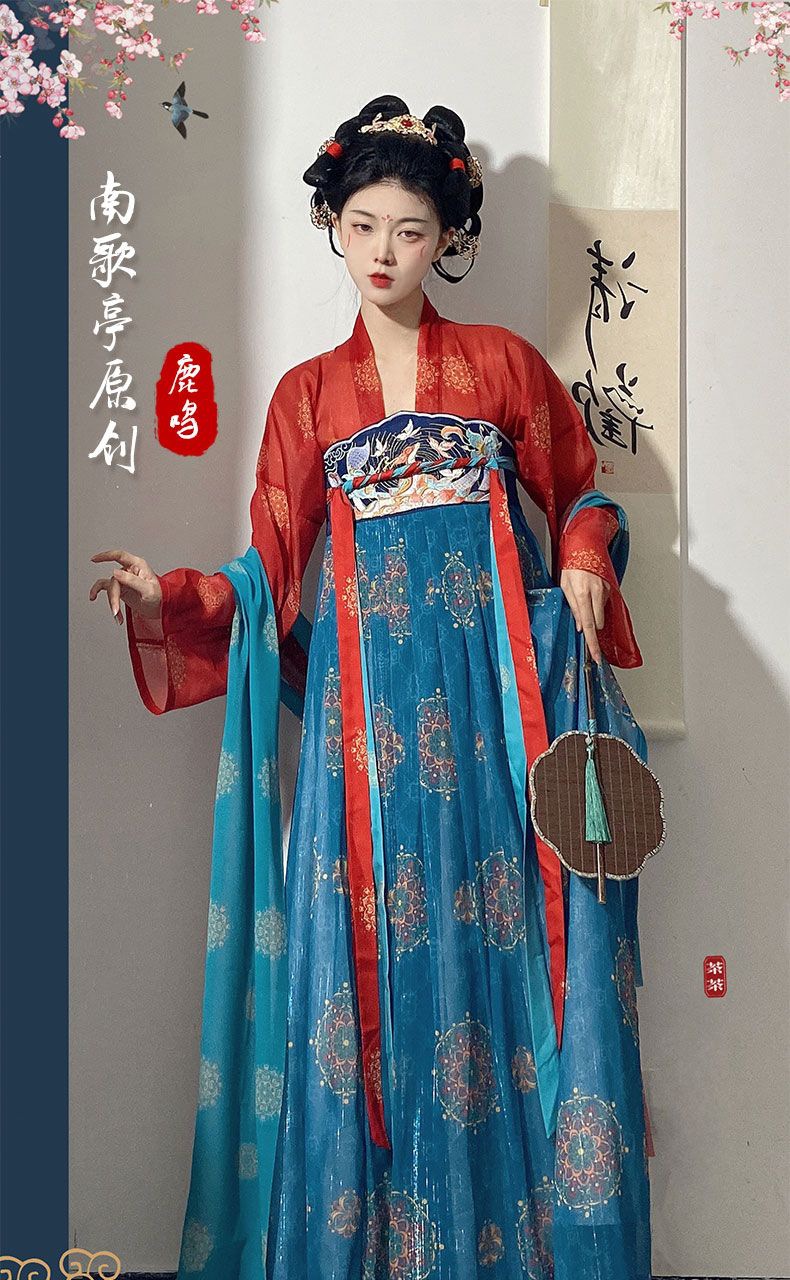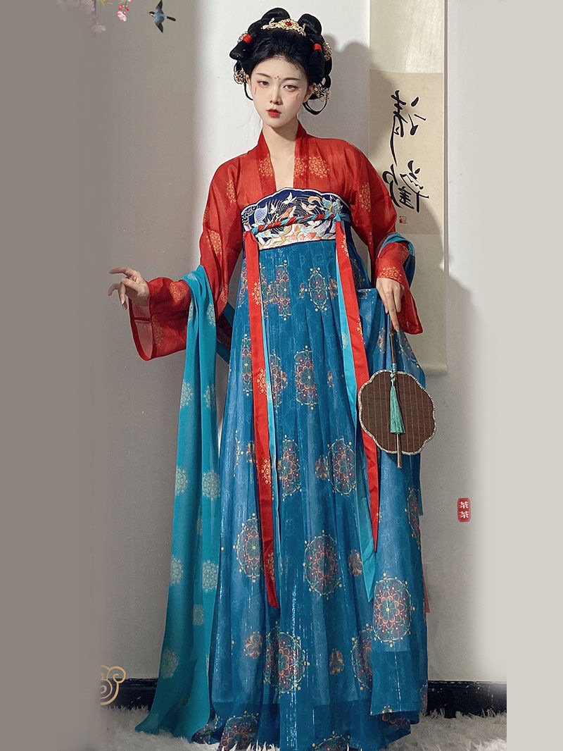 National Trend - Hanfu Women's Chinese Style, ethereal Tang Dynasty women's style, Super Ethereal Spring and Summer Daily chest-length blouse and skirt, Super improved daily life
