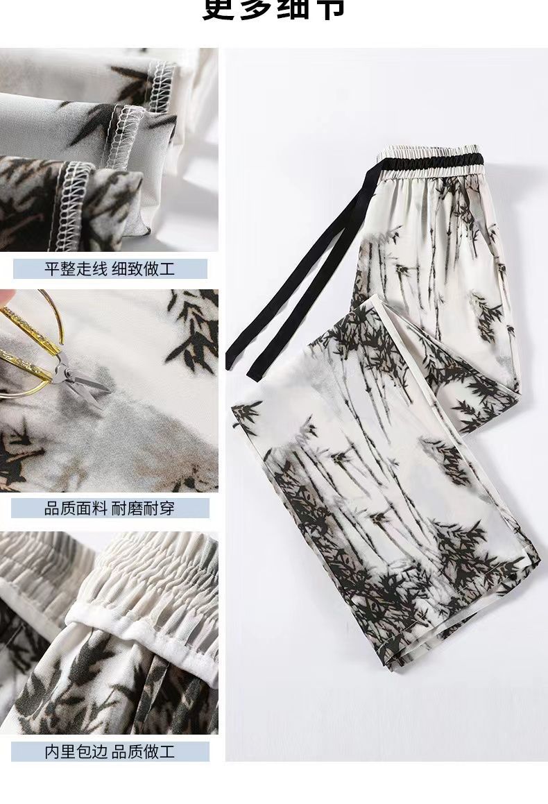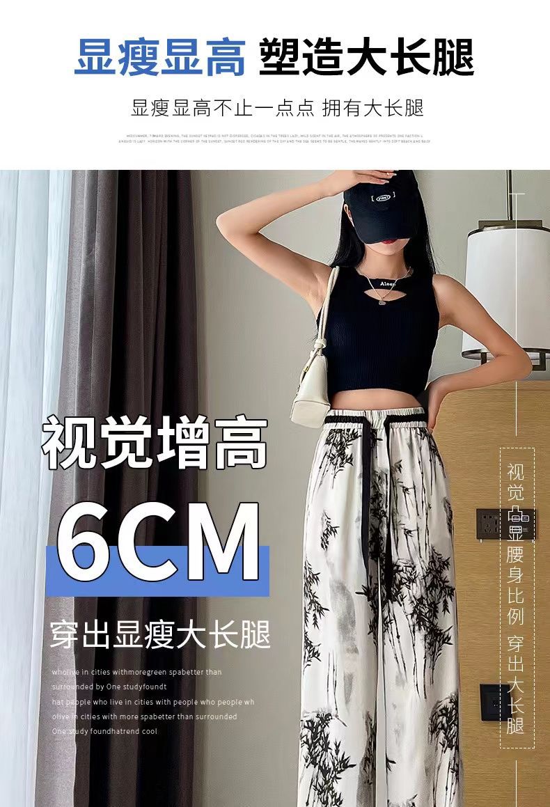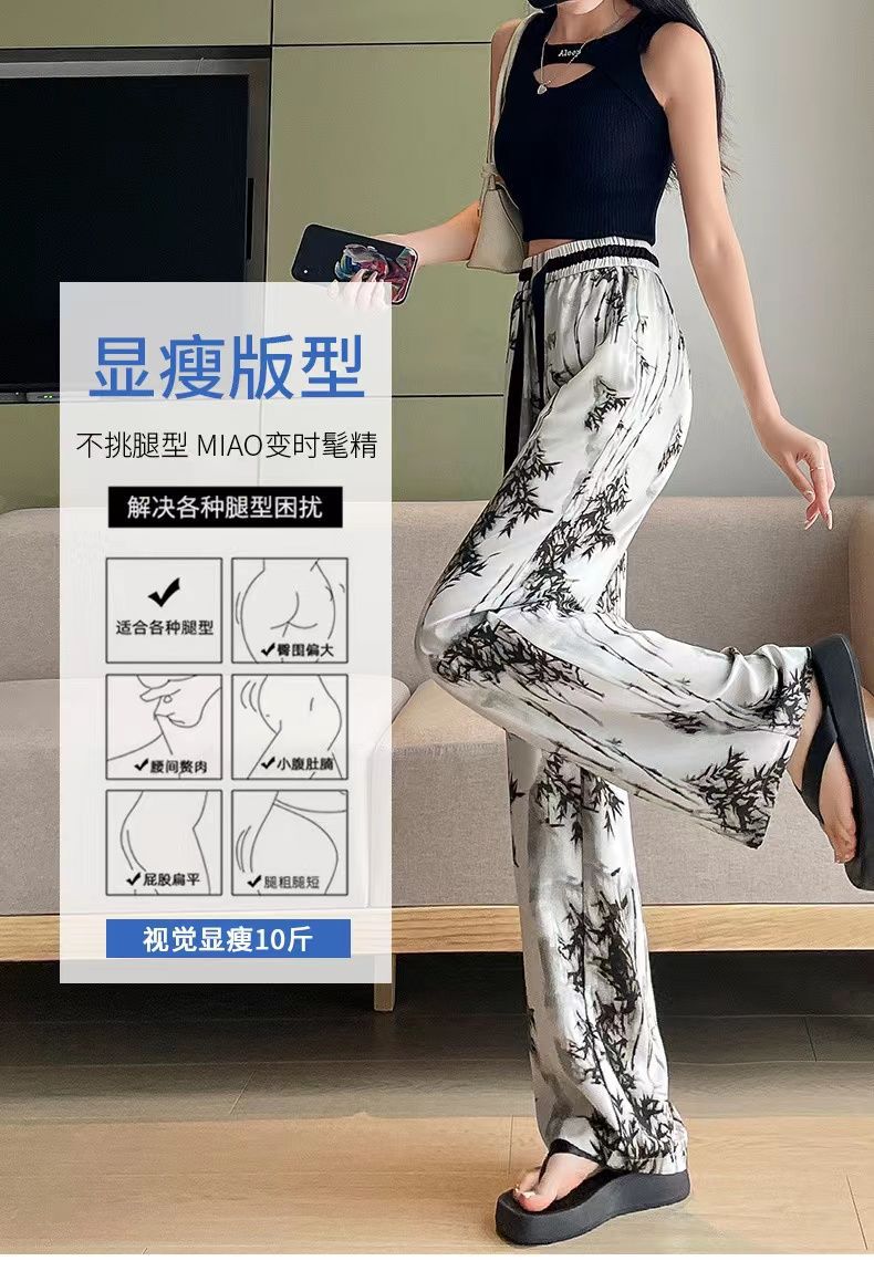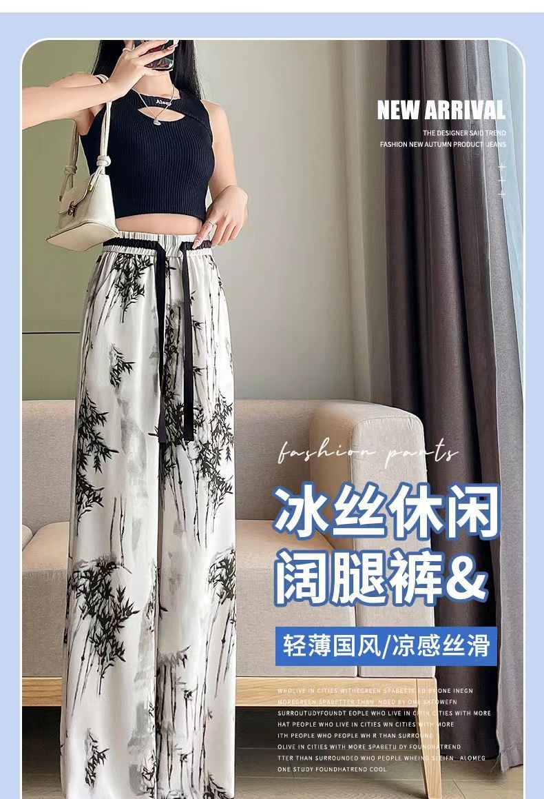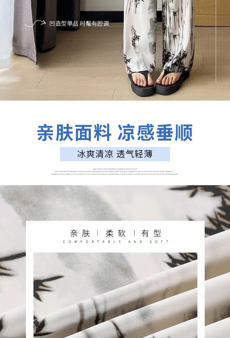 "National Trend ice Silk wide-leg pants for women's summer thin style 2025 New Chinese-style ink-wash pants, national style fairy cool chiffon sun protection pants.