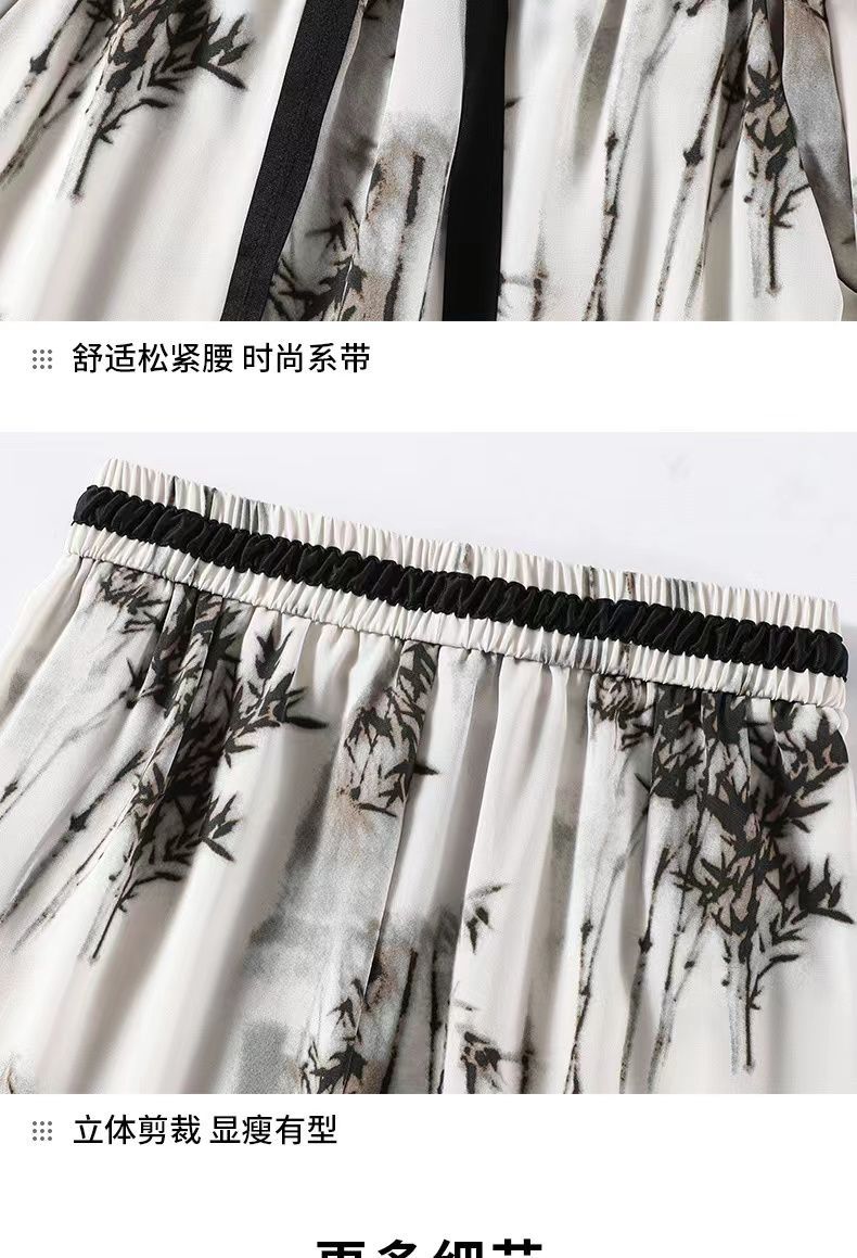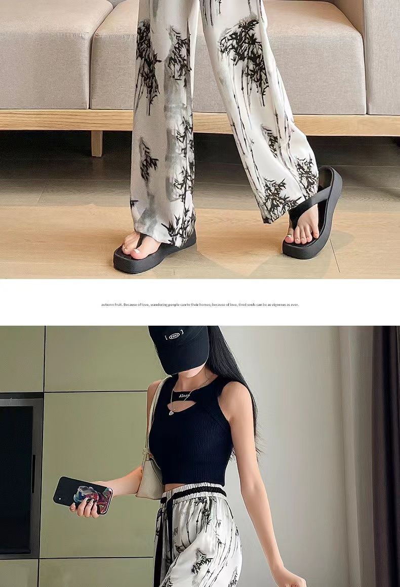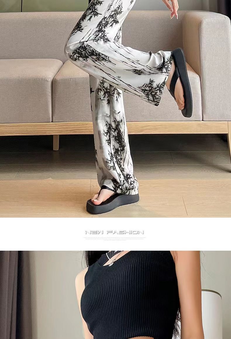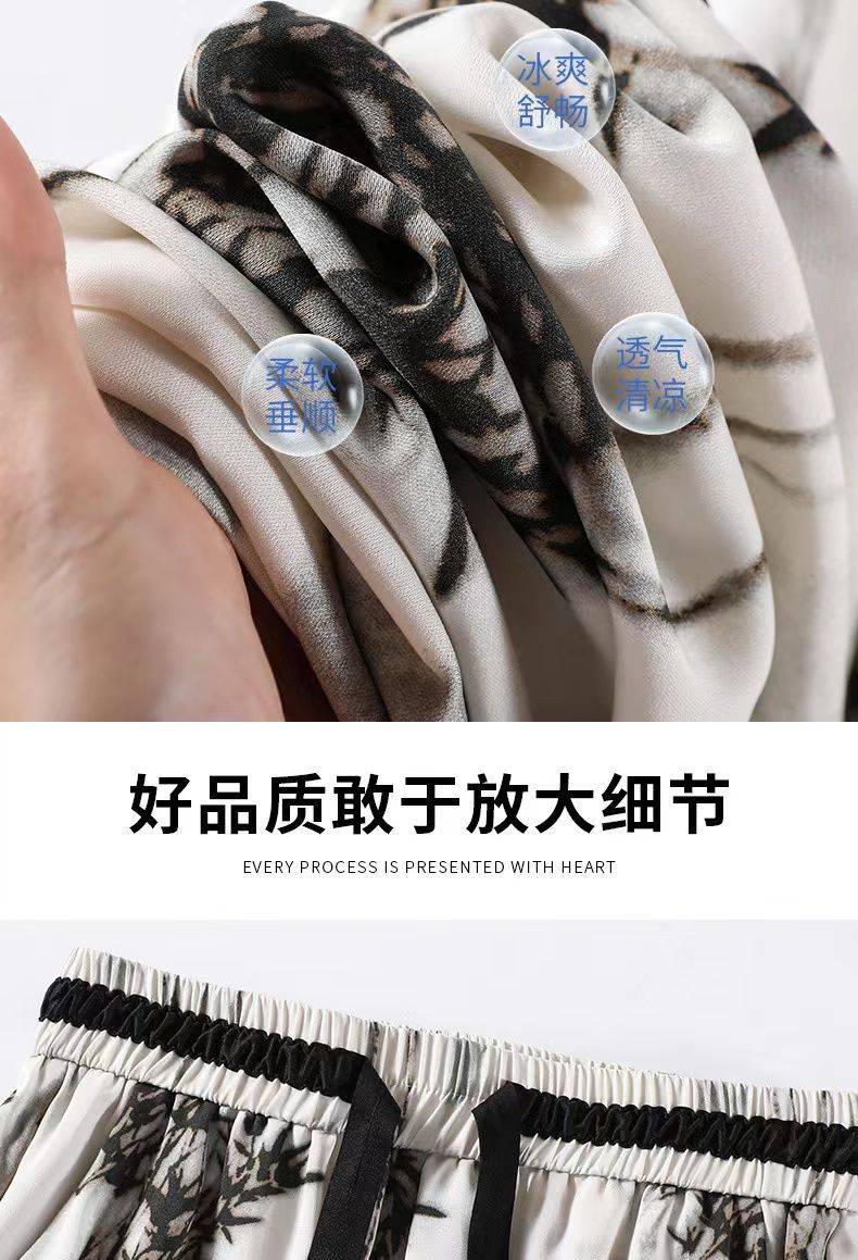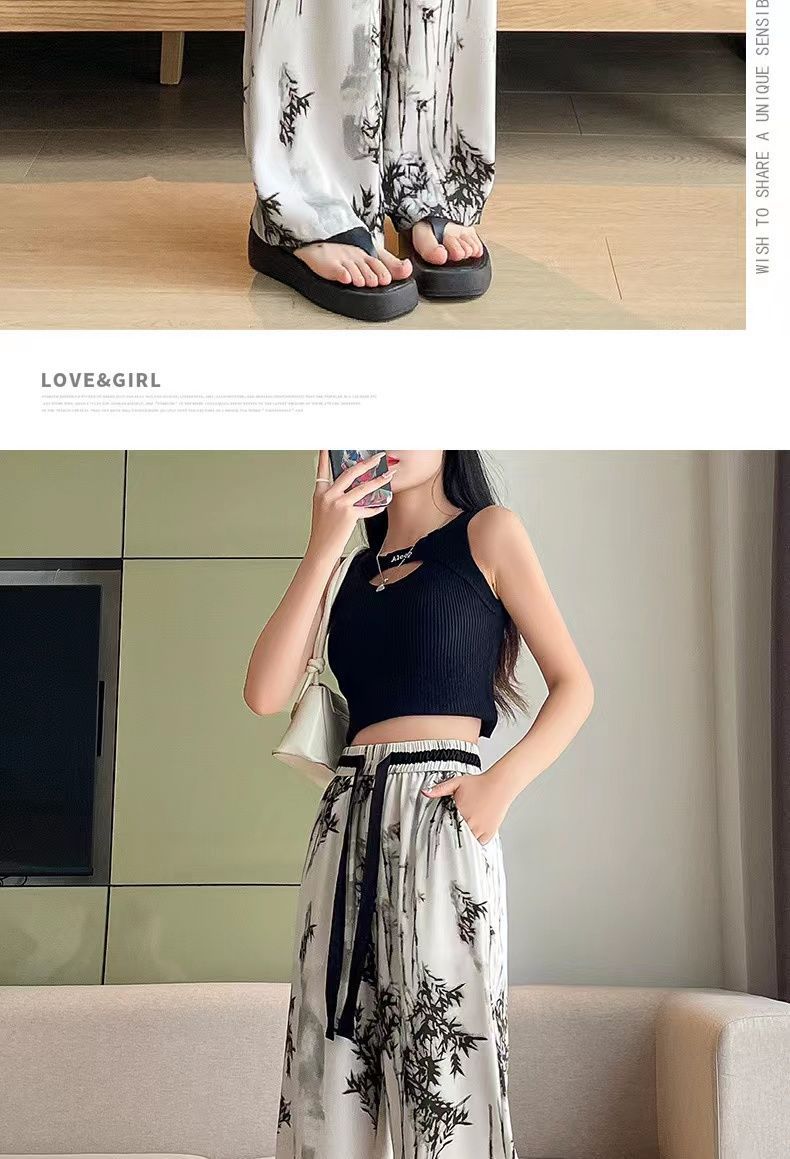 "National Trend ice Silk wide-leg pants for women's summer thin style 2025 New Chinese-style ink-wash pants, national style fairy cool chiffon sun protection pants.