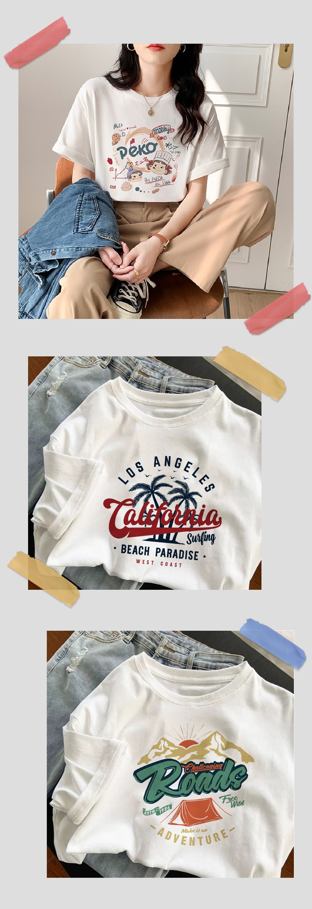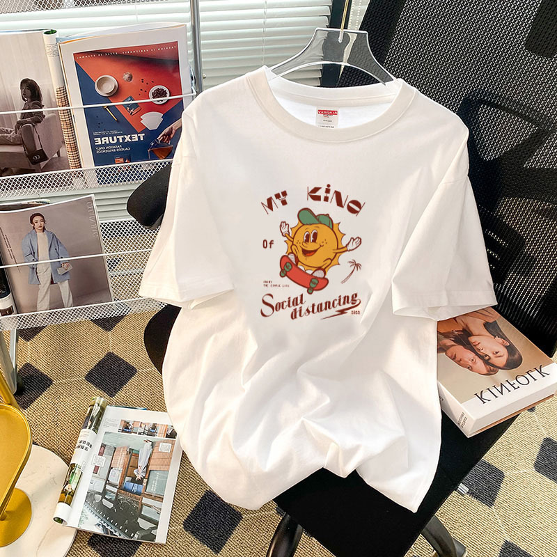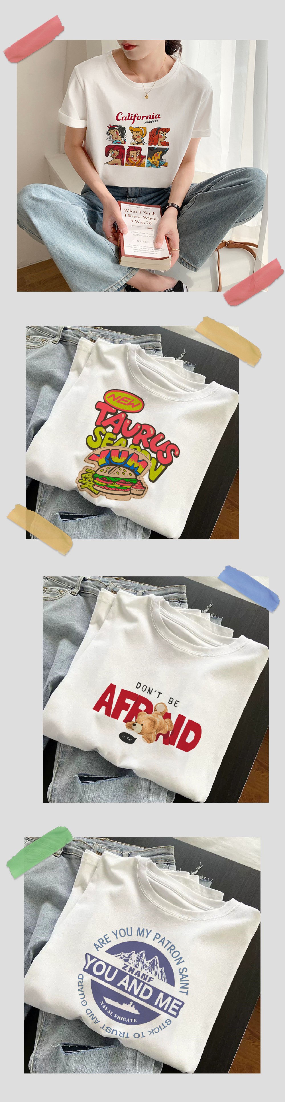 Pure cotton short-sleeved T-shirt for women 2023 Spring/Summer new printed casual loose round-neck versatile trendy brand top wholesale on Instagram