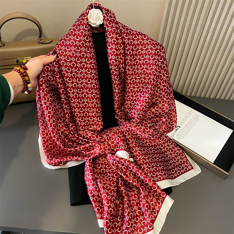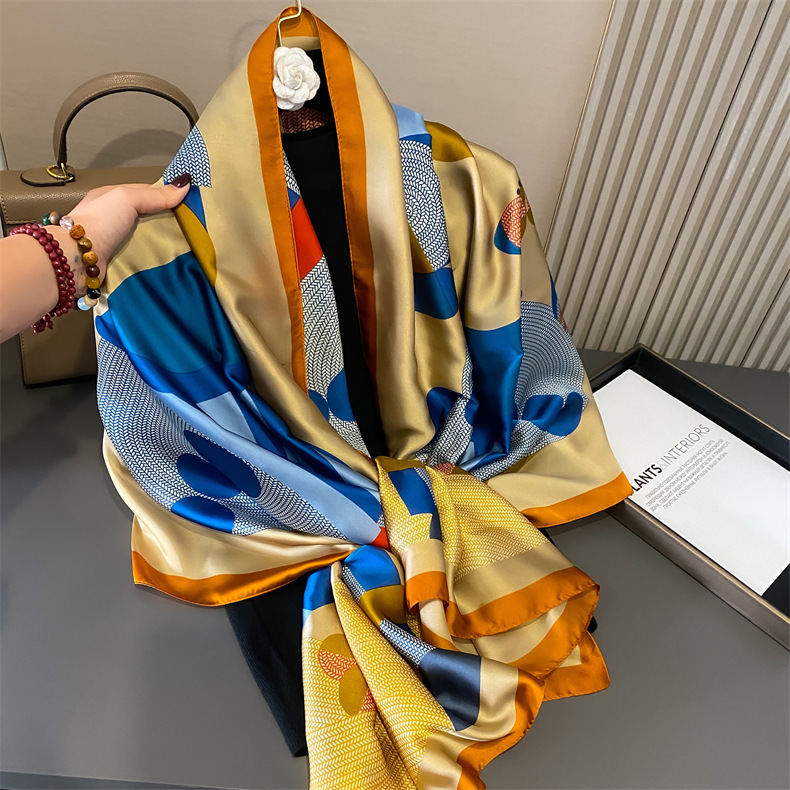 | New summer versatile silk scarf, high-end long silk scarf, travel sun protection imitation silk printed scarf, Hangzhou silk |