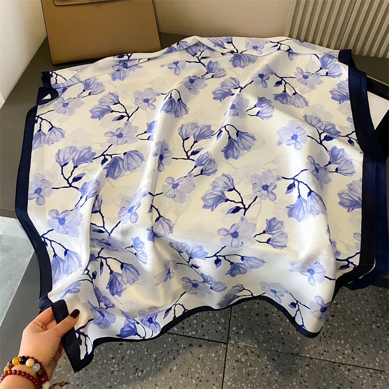 | 70cm silk scarf, small square scarf, high-end Korean-style, versatile, professional imitation silk scarf, retro printed binding silk scarf for women |