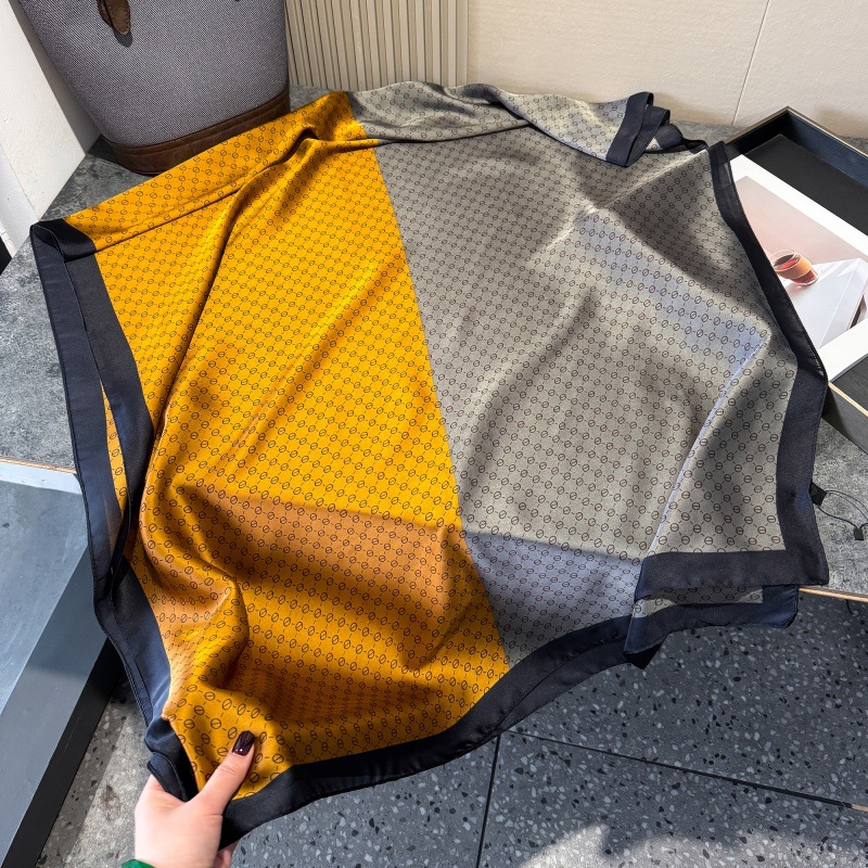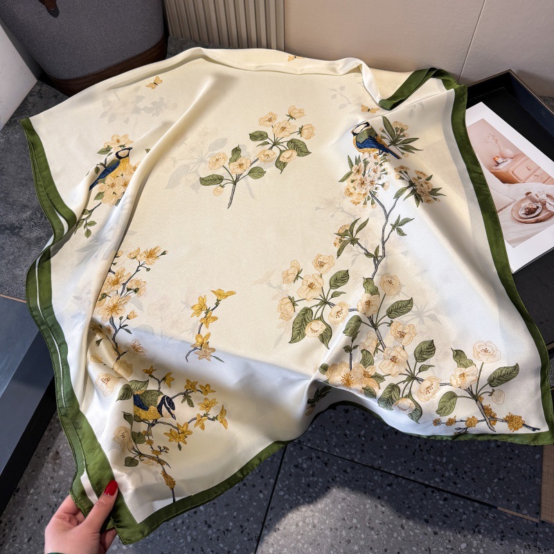 | A high-end silk scarf, a 90cm small square scarf, a professional neckerchief, a silk-like silk scarf, an elegant printed scarf for women in spring and summer |
