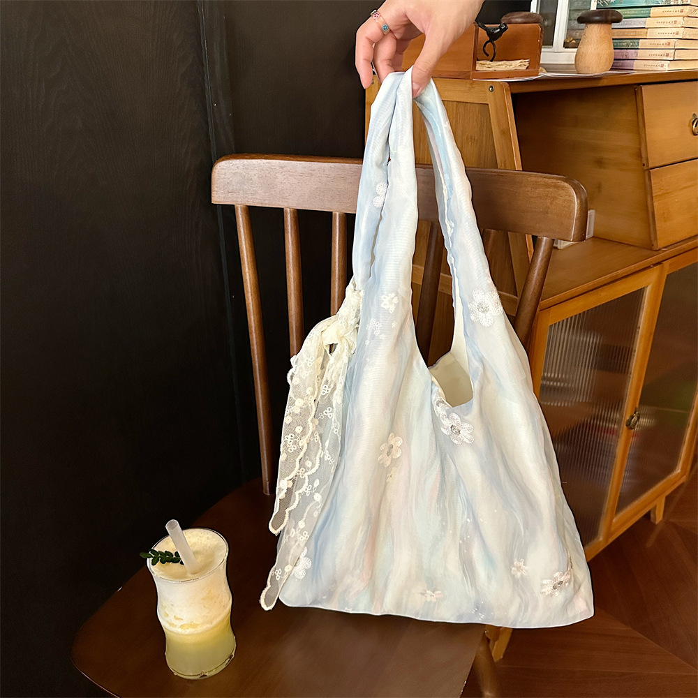 National trend style embroidered artistic and fresh fairy canvas bag, single-shoulder handbag, large-capacity commuting vest bag