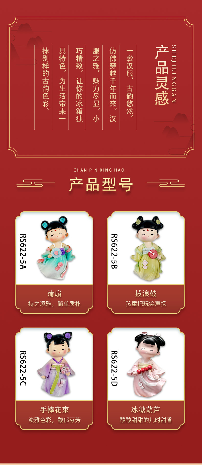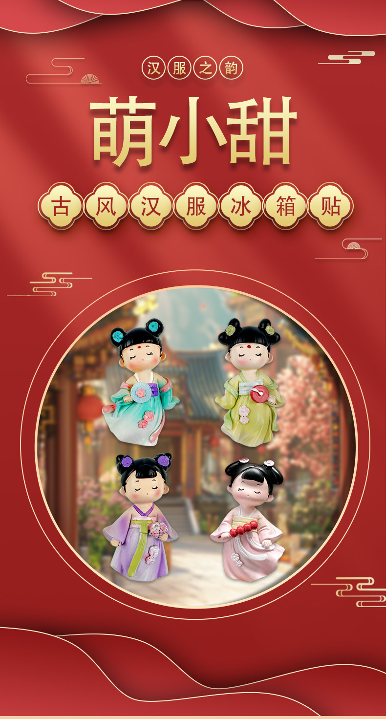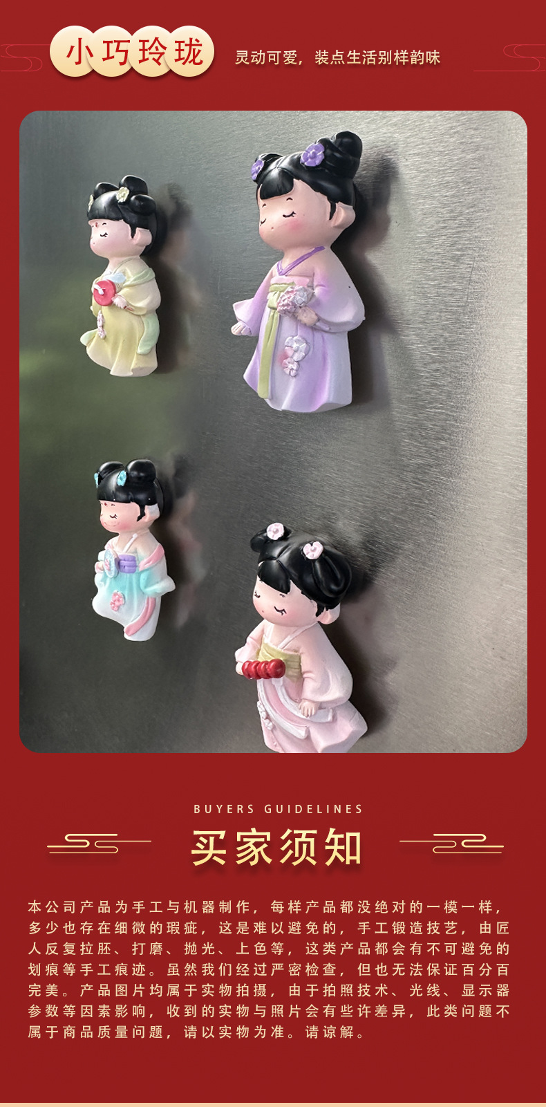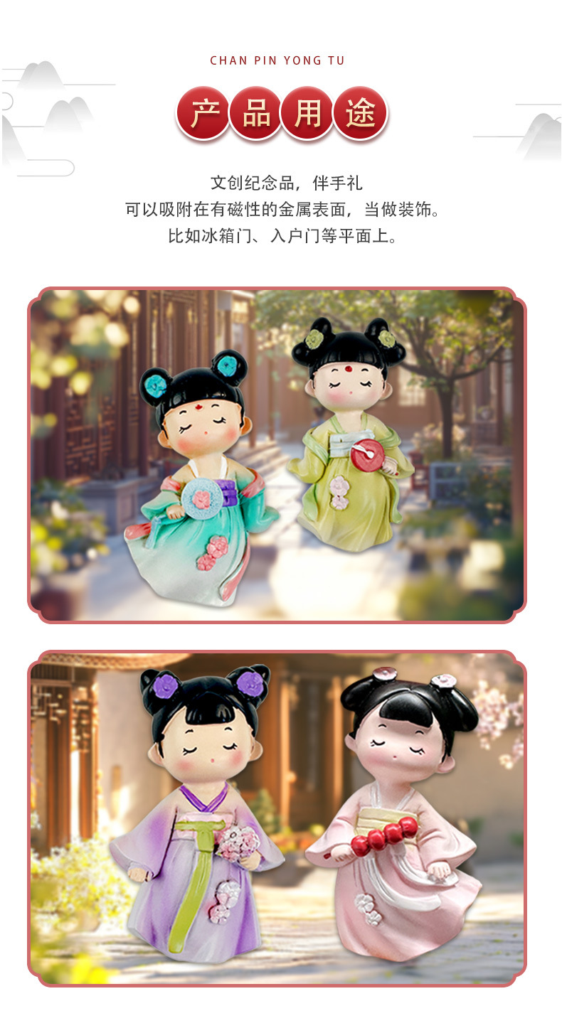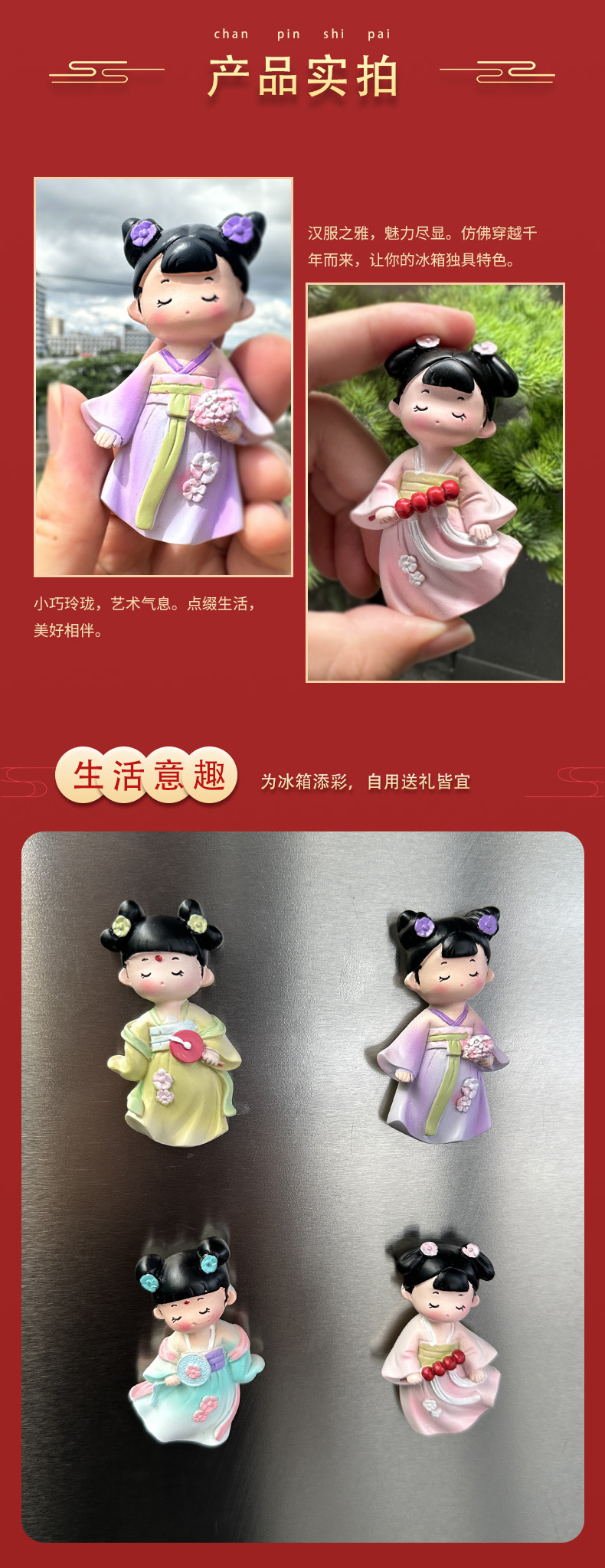 "National Trend Xi 'an Hanfu Girl Cultural and Creative 2024 New refrigerator Magnet Magnetic Birthday Gift Ancient-style doll Creative Magnetic tile.