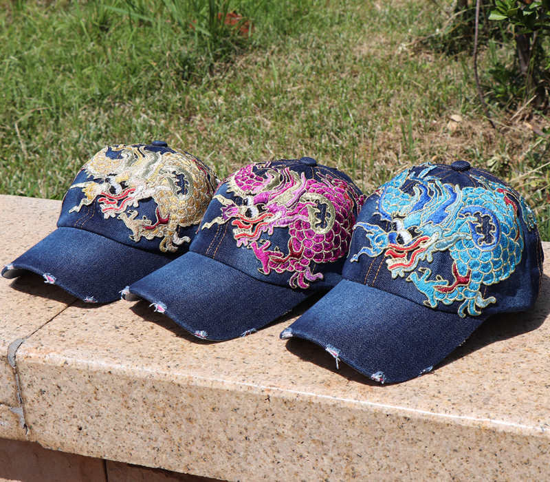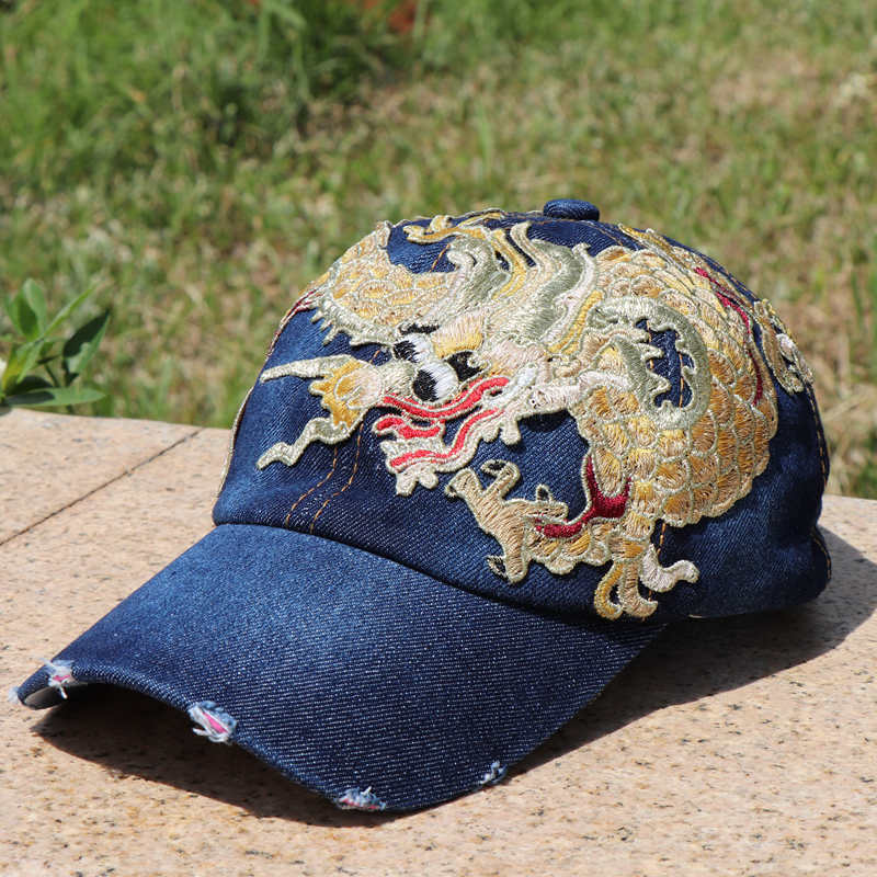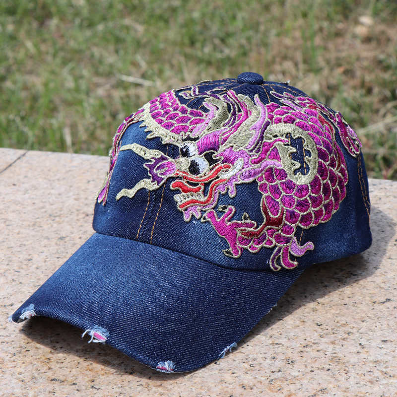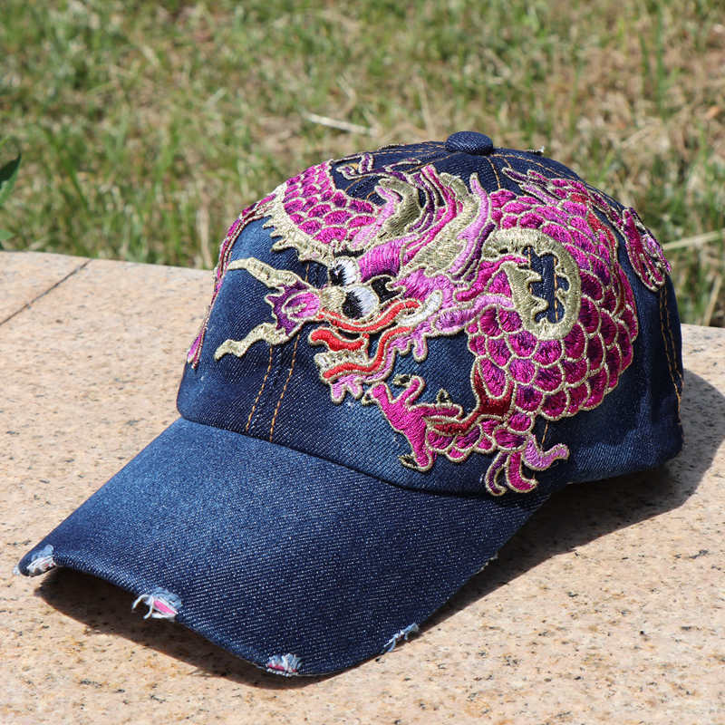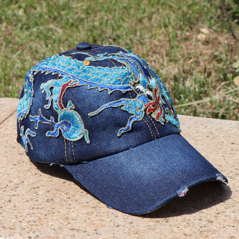 "National trend Yunnan ethnic style dragon pattern embroidered denim hat, spring and summer outing sun hat, retro baseball cap, Chinese style.