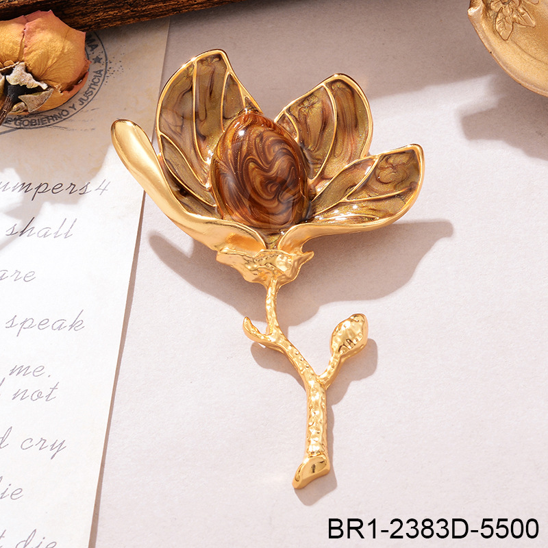 Natural Baroque pearl magnolia flower multi-color oil drip brooch, autumn and winter coat brooch accessory, high-end brooch