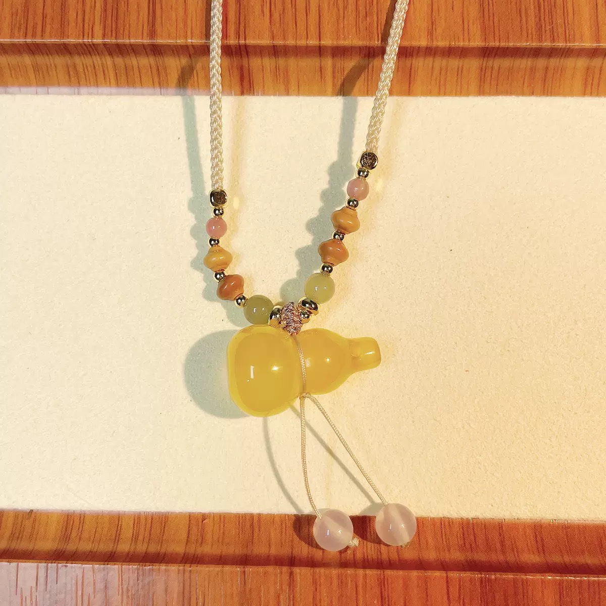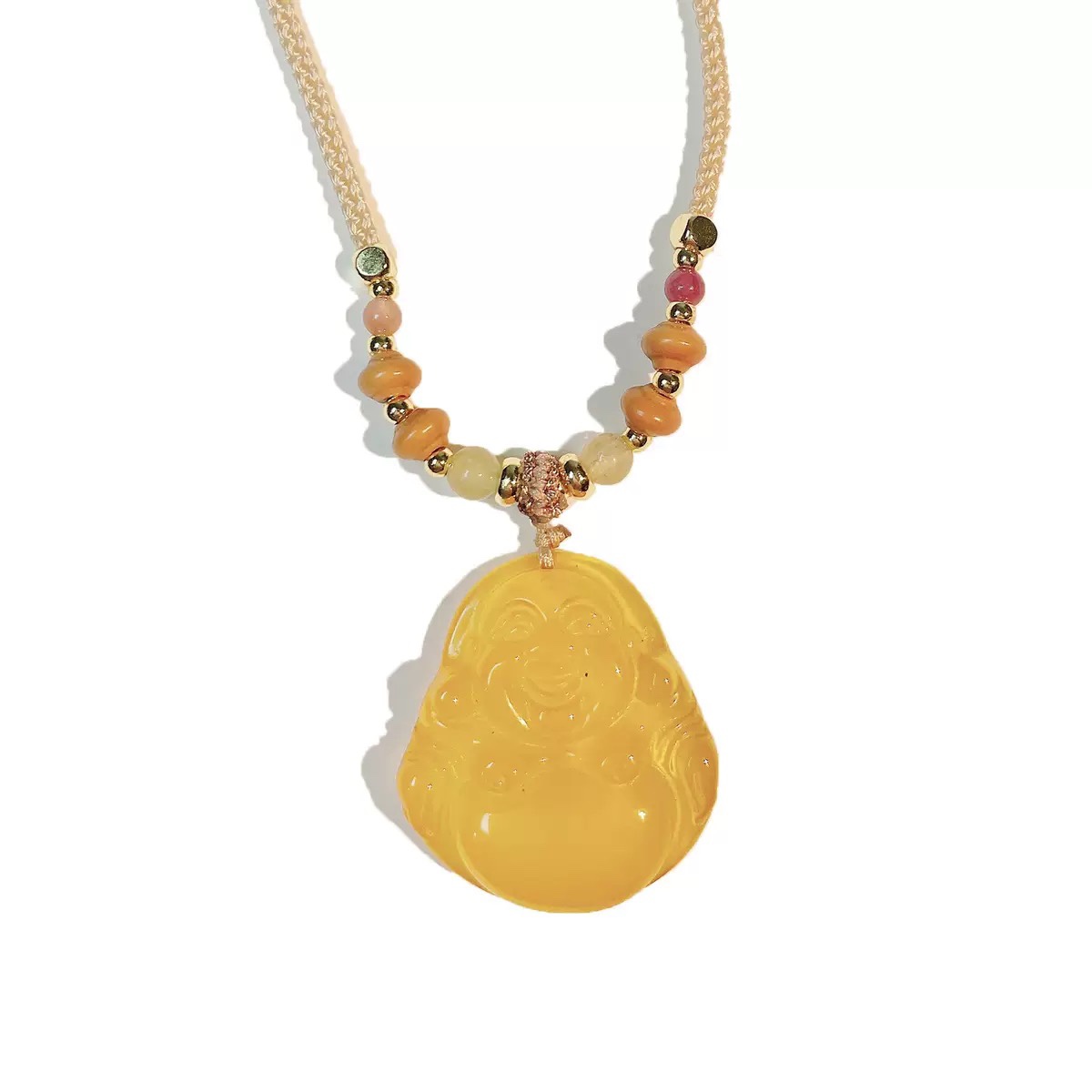 Natural chalcedony gourd pendant, Maitreya Buddha necklace, yellow agate peace buckle, light luxury and high-end style new collarbone chain
