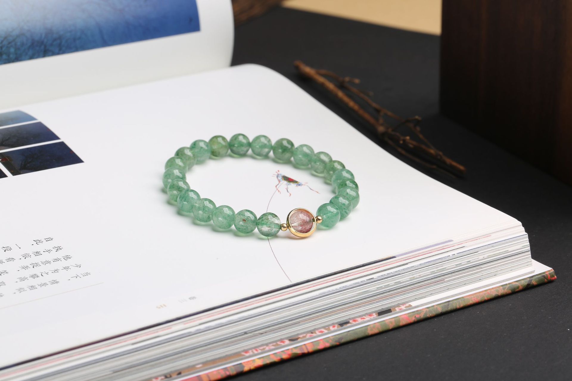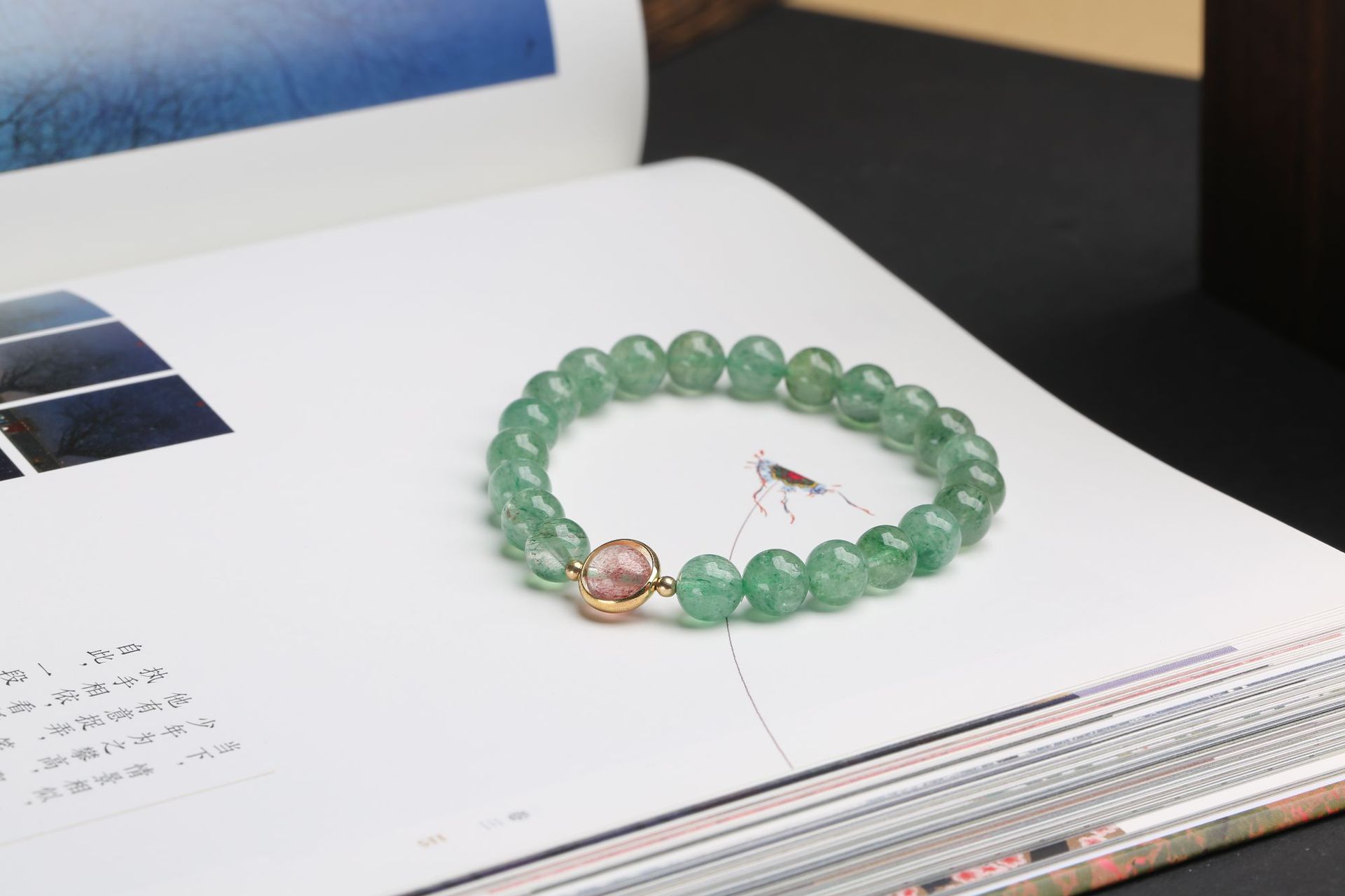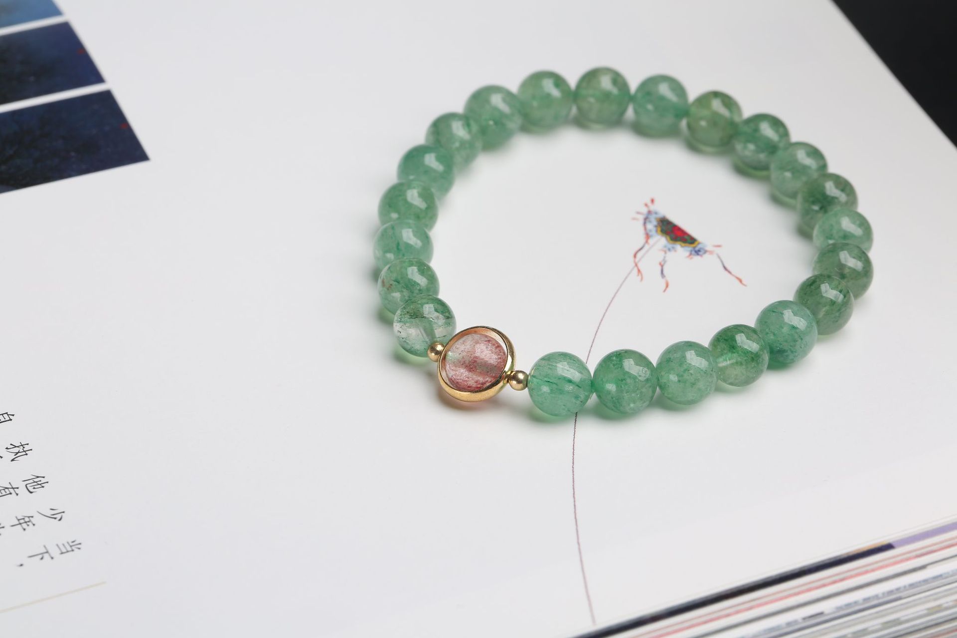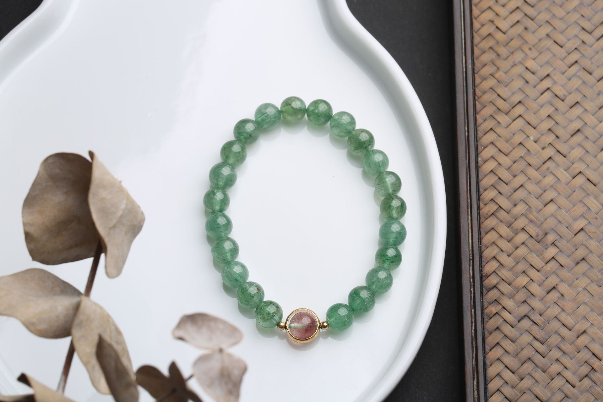 Natural crystal bracelet, green strawberry crystal bracelet, women's DIY accessory, green strawberry crystal round bead bracelet accessory wholesale