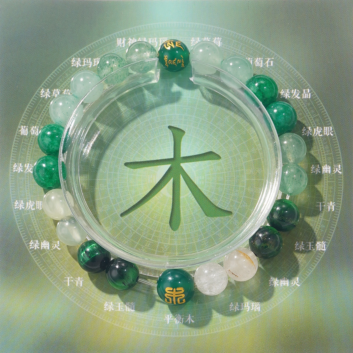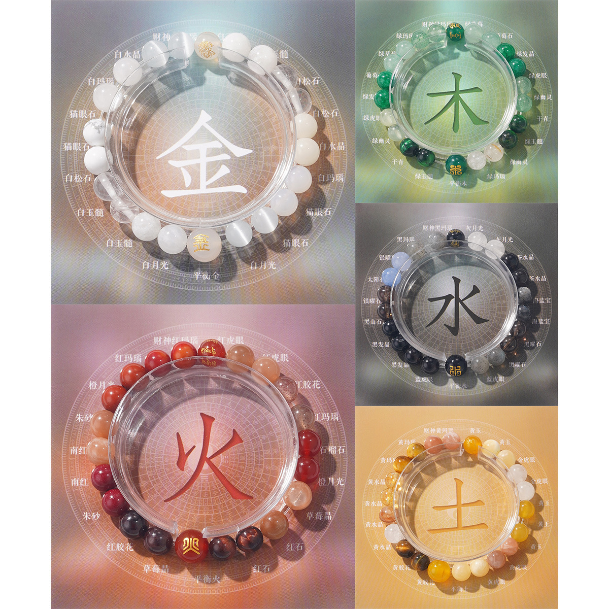Natural crystal jade multi-treasure five-element bracelet, single-bead balanced bracelet, metal, wood, water, fire, earth, wealth and good fortune, women's jewelry