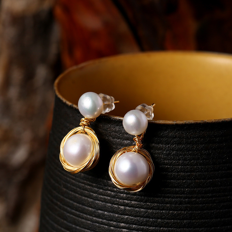 Natural freshwater pearl earrings, small teardrop stud earrings, 14K gold-plated S925 silver needle earrings, stud earrings for women