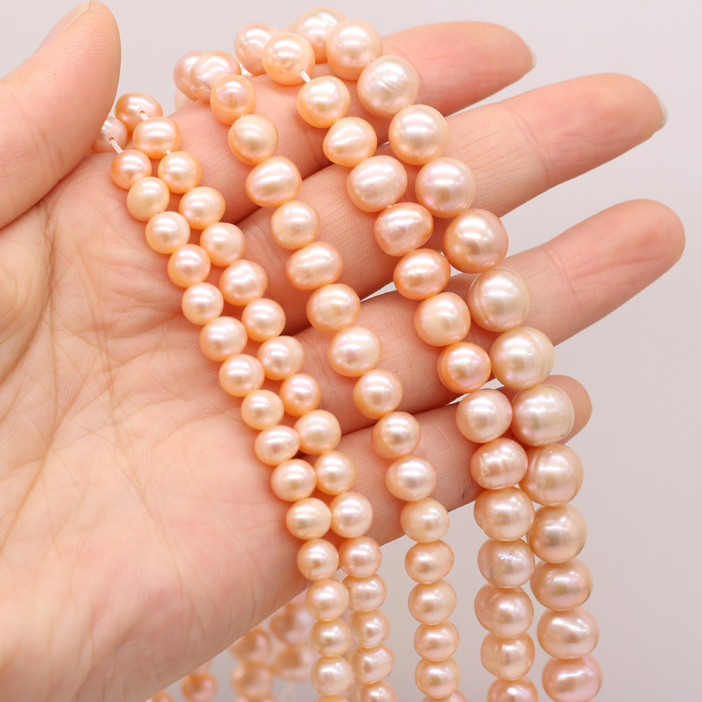 Natural freshwater round AA pearl white powder purple DIY jewelry accessories, handcrafted jewelry necklaces, semi-finished product production and wholesale