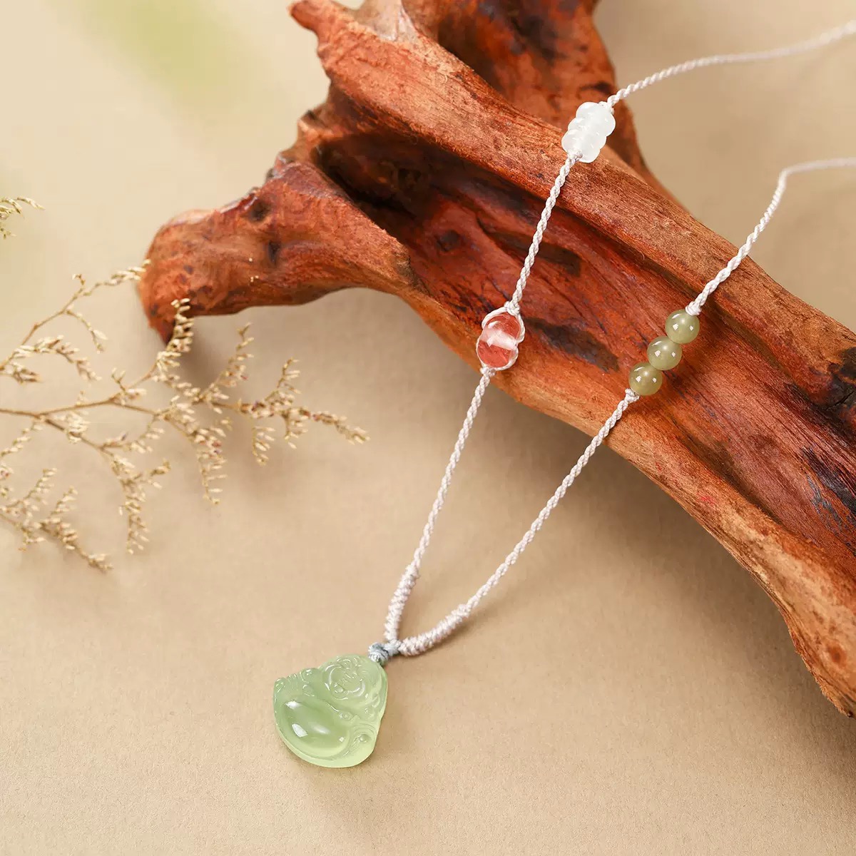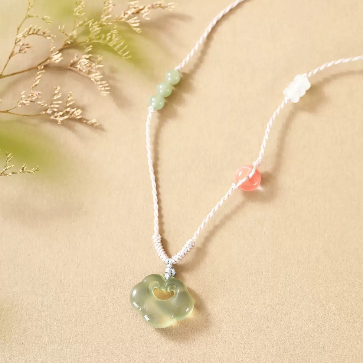 Natural green chalcedony necklace, women's peace pendant, Buddha God gourd Auspicious cloud, retro new Chinese style adjustable braided rope sweater chain